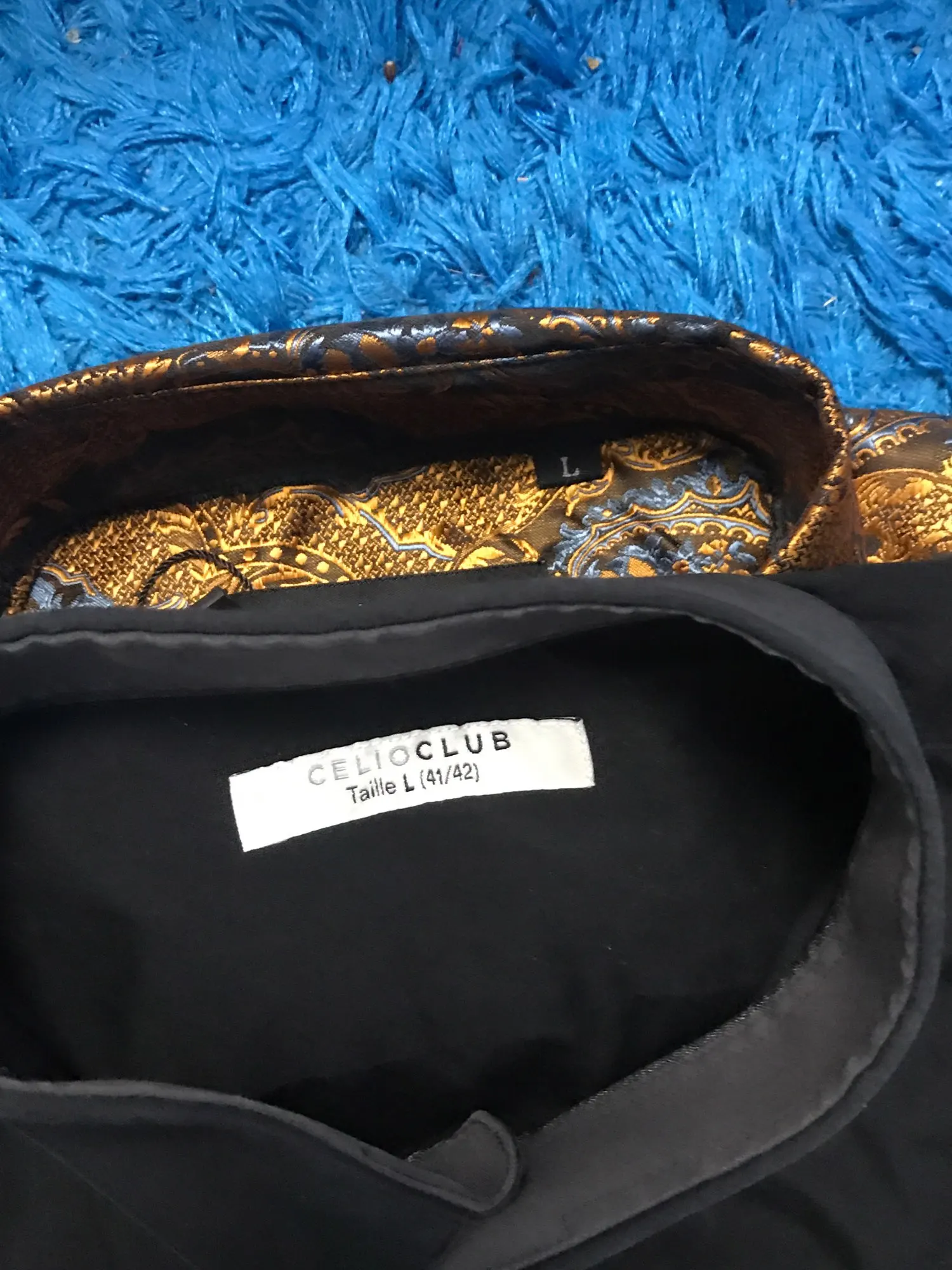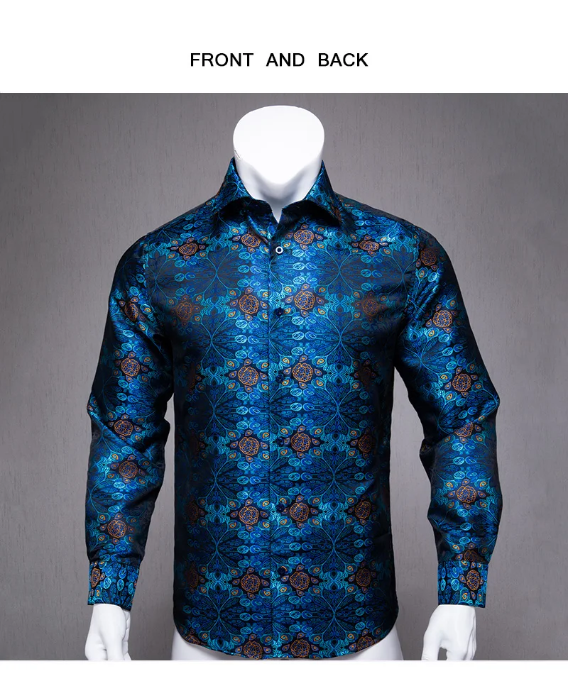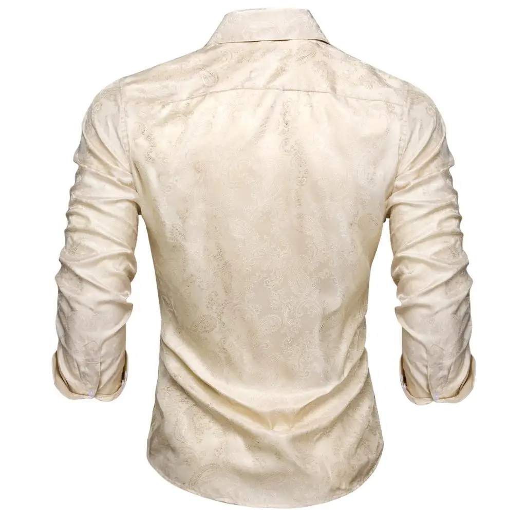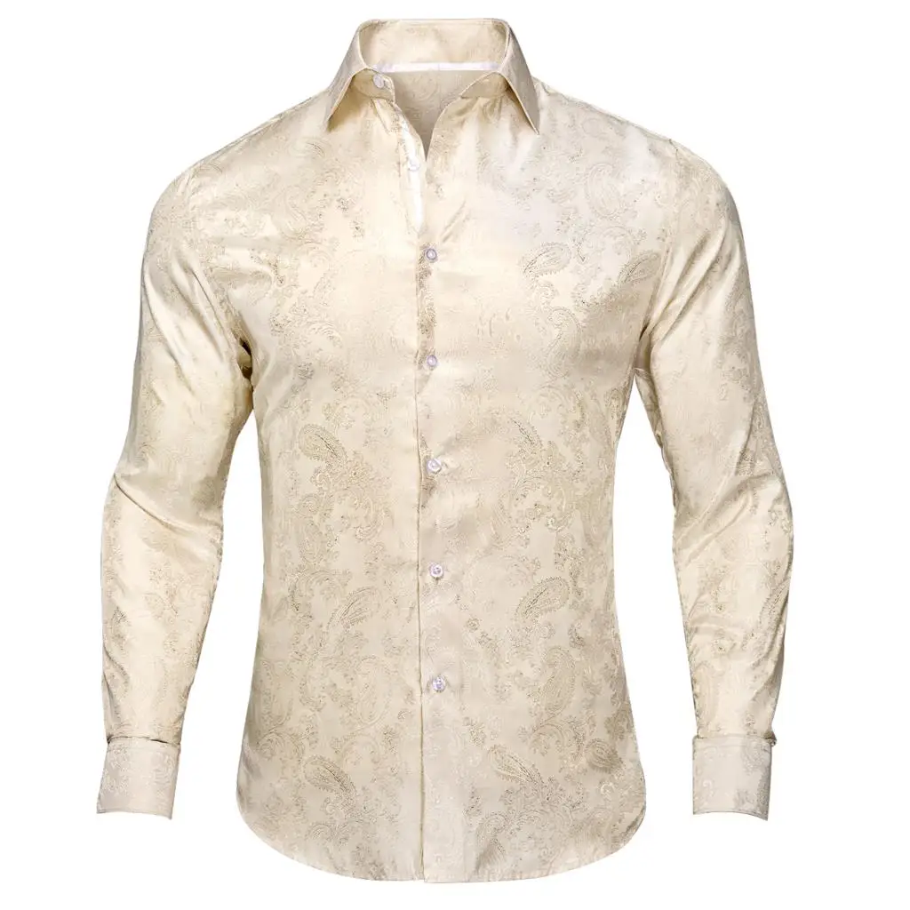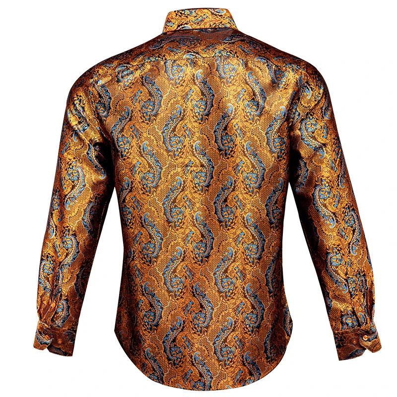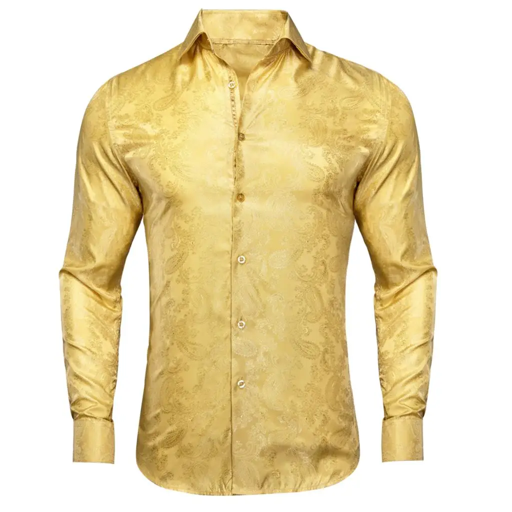 Hi-Tie 100% шелк роскошная черная золотая вышивка Пейсли Мужская рубашка с длинным рукавом мужская повседневная рубашка на пуговицах верхняя одежда подарок