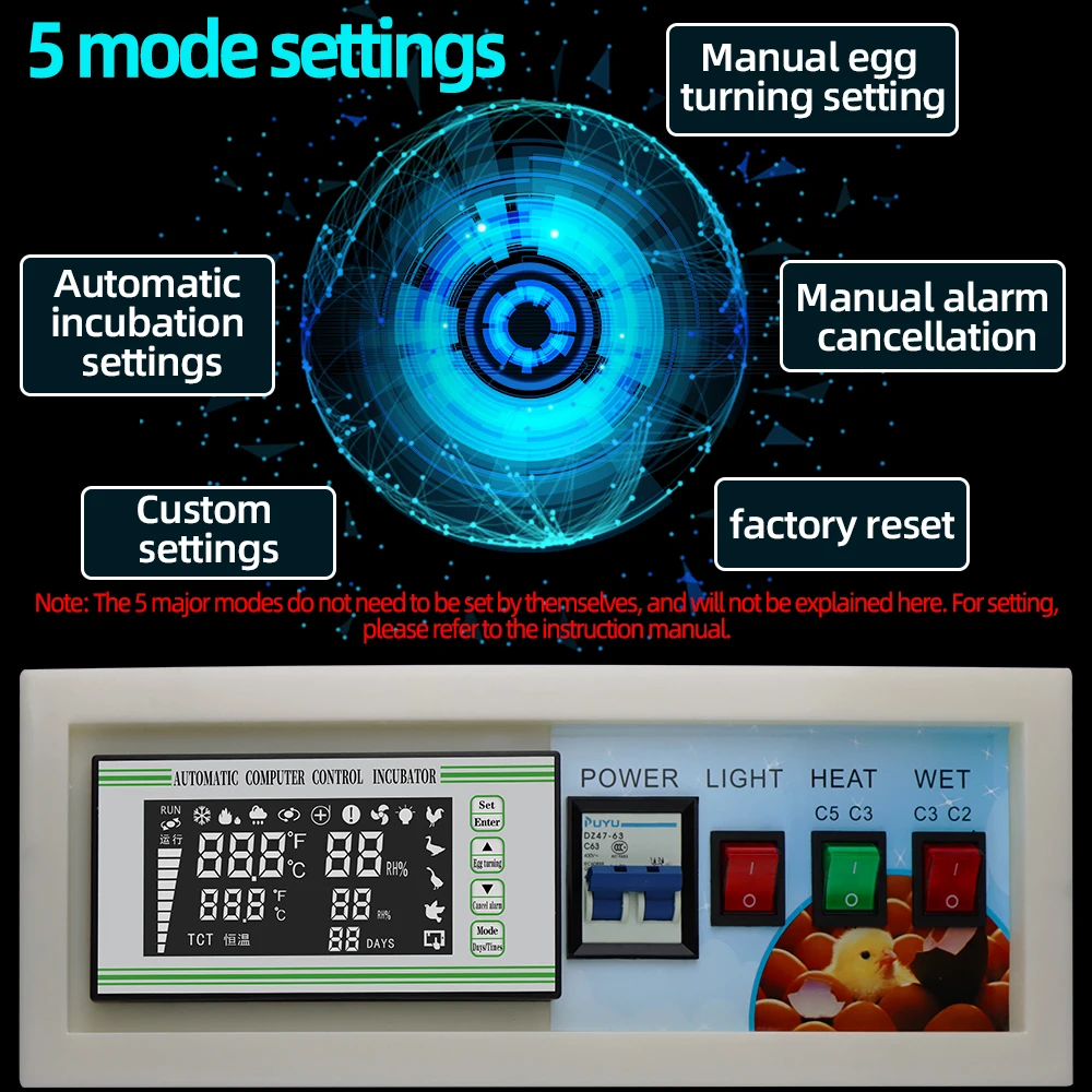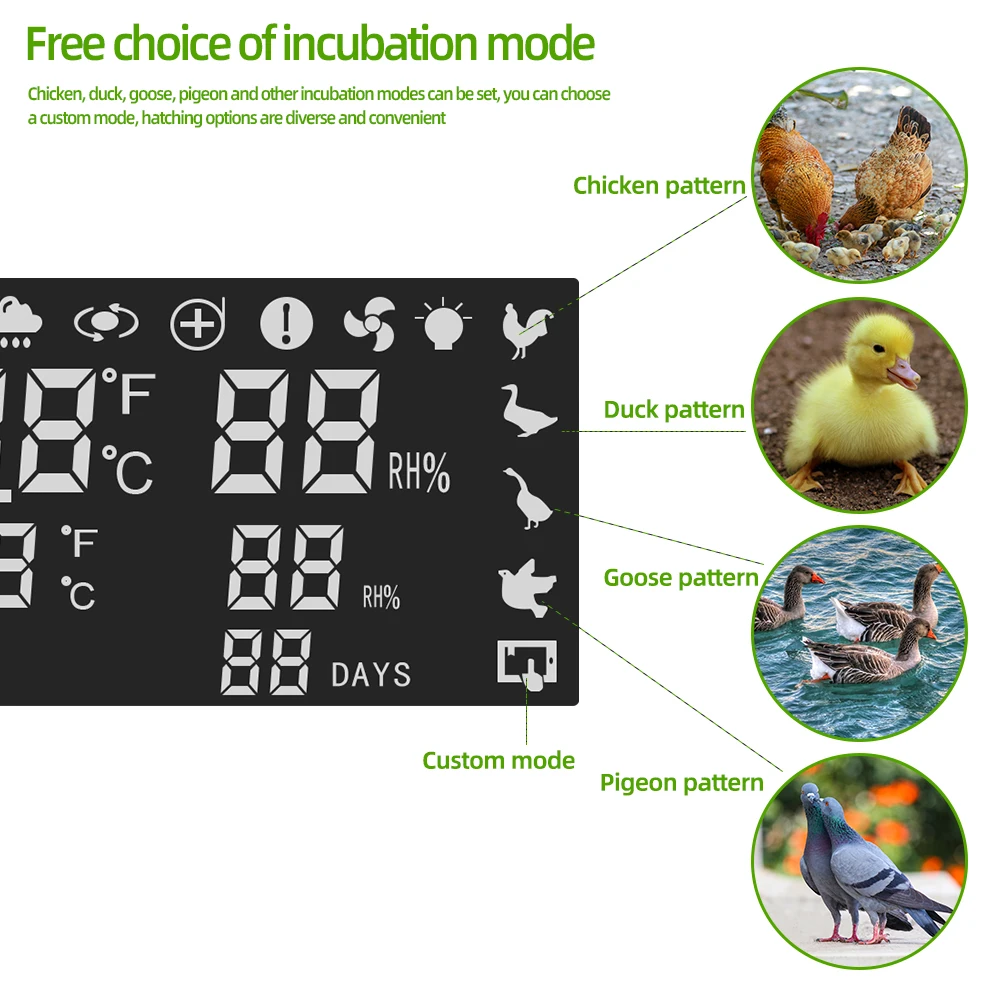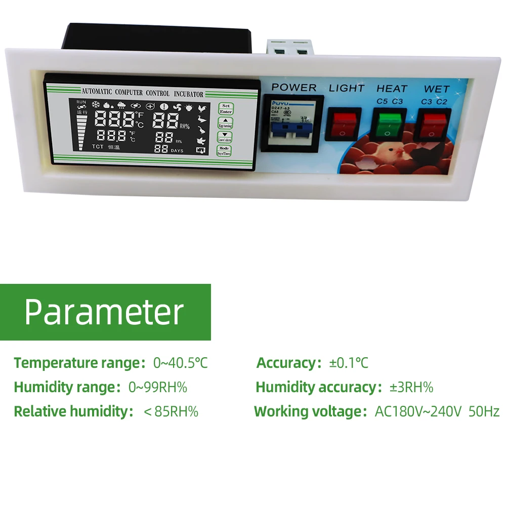 Интеллектуальный контроллер инкубатора нового поколения-это полностью интеллектуальная микрокомпьютерная система управления, разработанная и разработанная для инкубации и применяющая новейшие микроэлектронные технологии и компоненты нового типа. Он применяет микрокомпьютерные чипы, чтобы иметь сильные анти-помехи и высокую стабильную производительность, датчик температуры Применяет высокоточный датчик, чтобы иметь высокую точность сбора и широкий диапазон температур; Он применяет высокоэффективный плавный датчик к высокому pecison для эффективного обеспечения прочности и надежности. Он имеет дизайн удобных для пользователя четырех экранов для отображения наклоняющихся двух экранов, отображающих Температура и влажность инкубатора и других двух экранов показывают время поворота яйца и инкубационные дни, нажимая кнопки и показывая заданную температуру и влажность, нажимая клавиши. И пять видов инкубационных режимов для пользовательского определения, курица, утка, гусь и голубь доступны для Селекон.