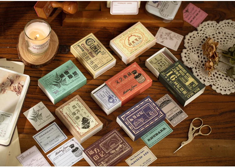 60 шт. Винтаж штамп Стикеры s Ретро спичечный коробок Скрапбукинг бумажная наклейка для творчества Стикеры для художественного оформления ногтей, ручная работа Скрапбукинг Стикеры s Набор Для Ablum дневник