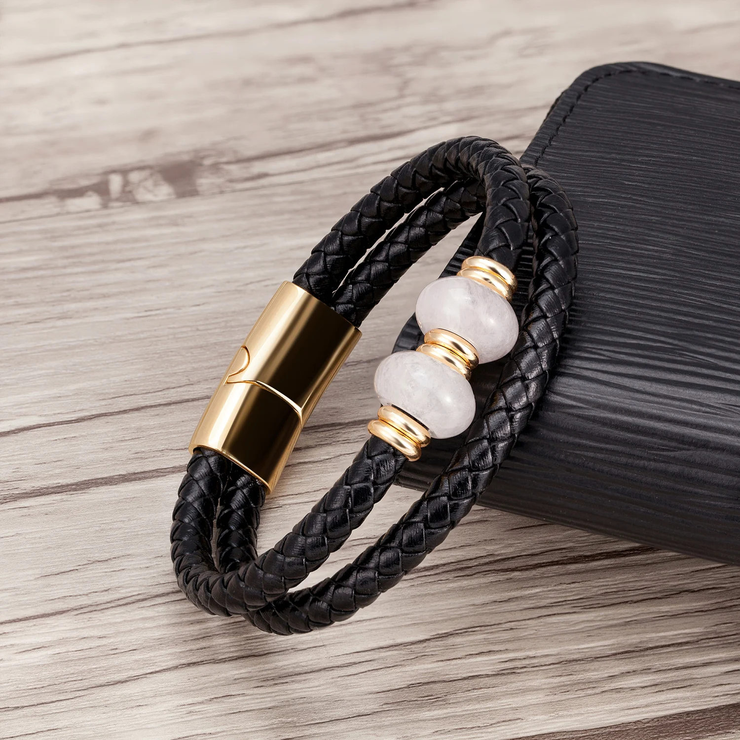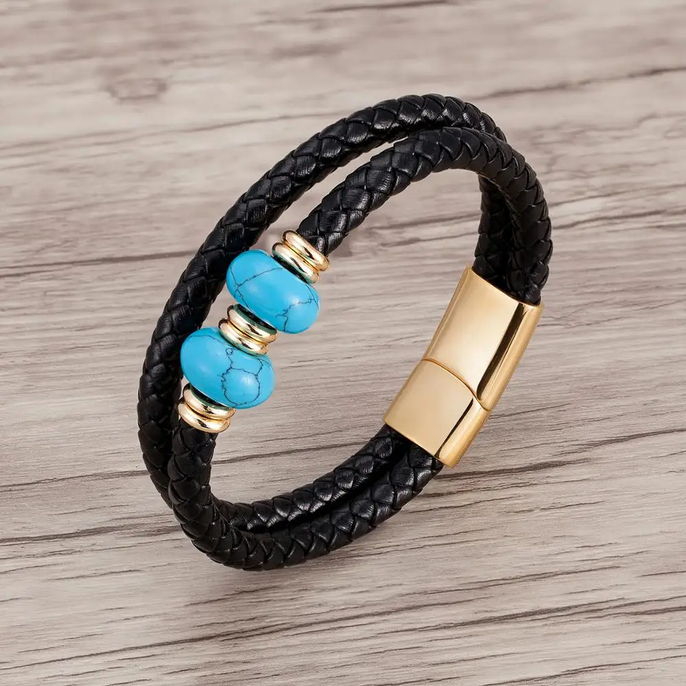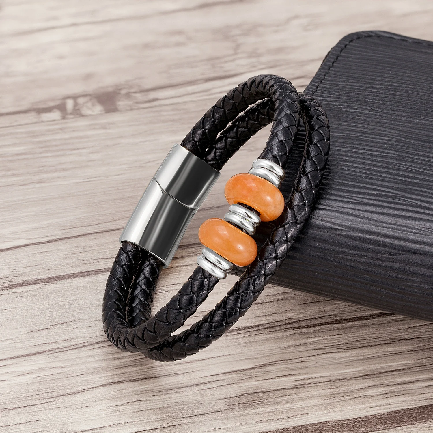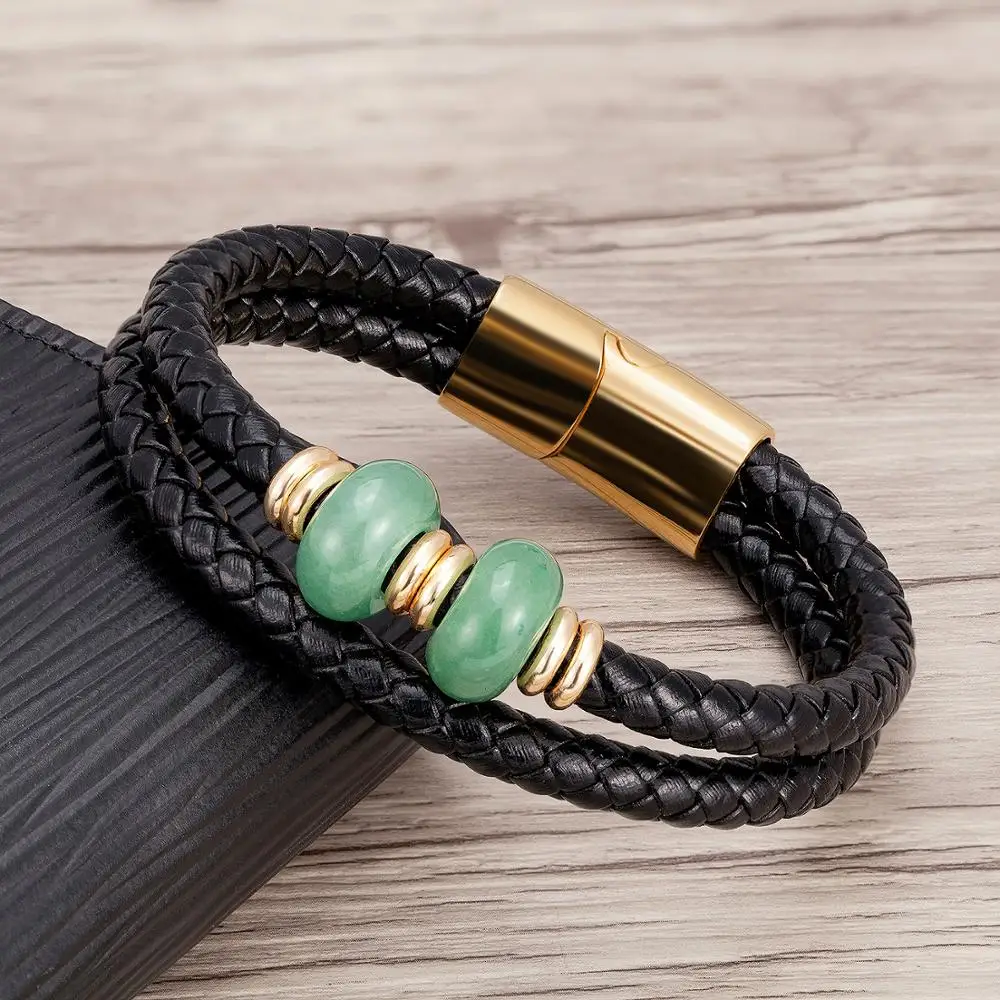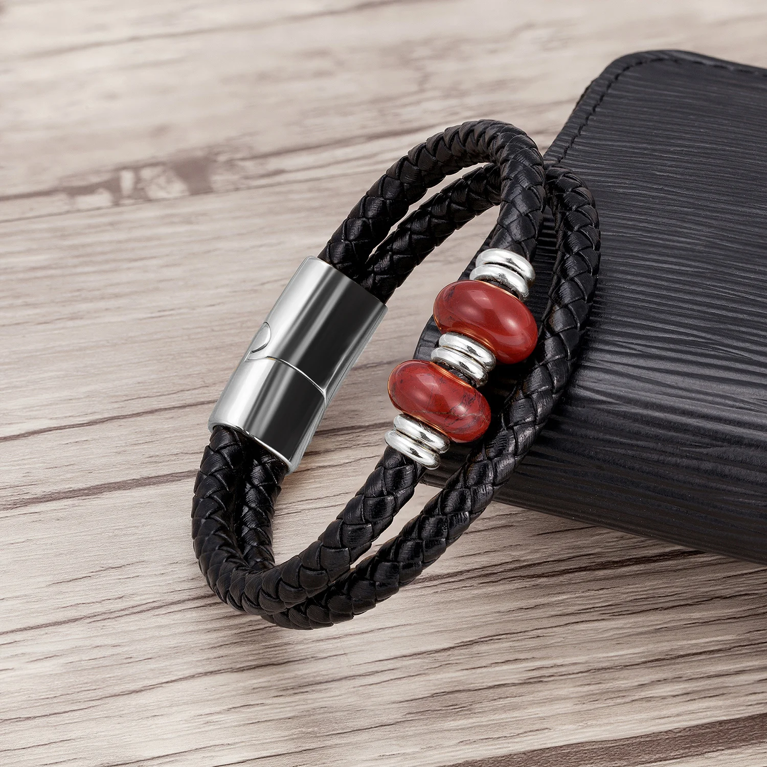 Браслет-цепочка мужской из натуральной кожи с натуральным камнем и магнитной застежкой