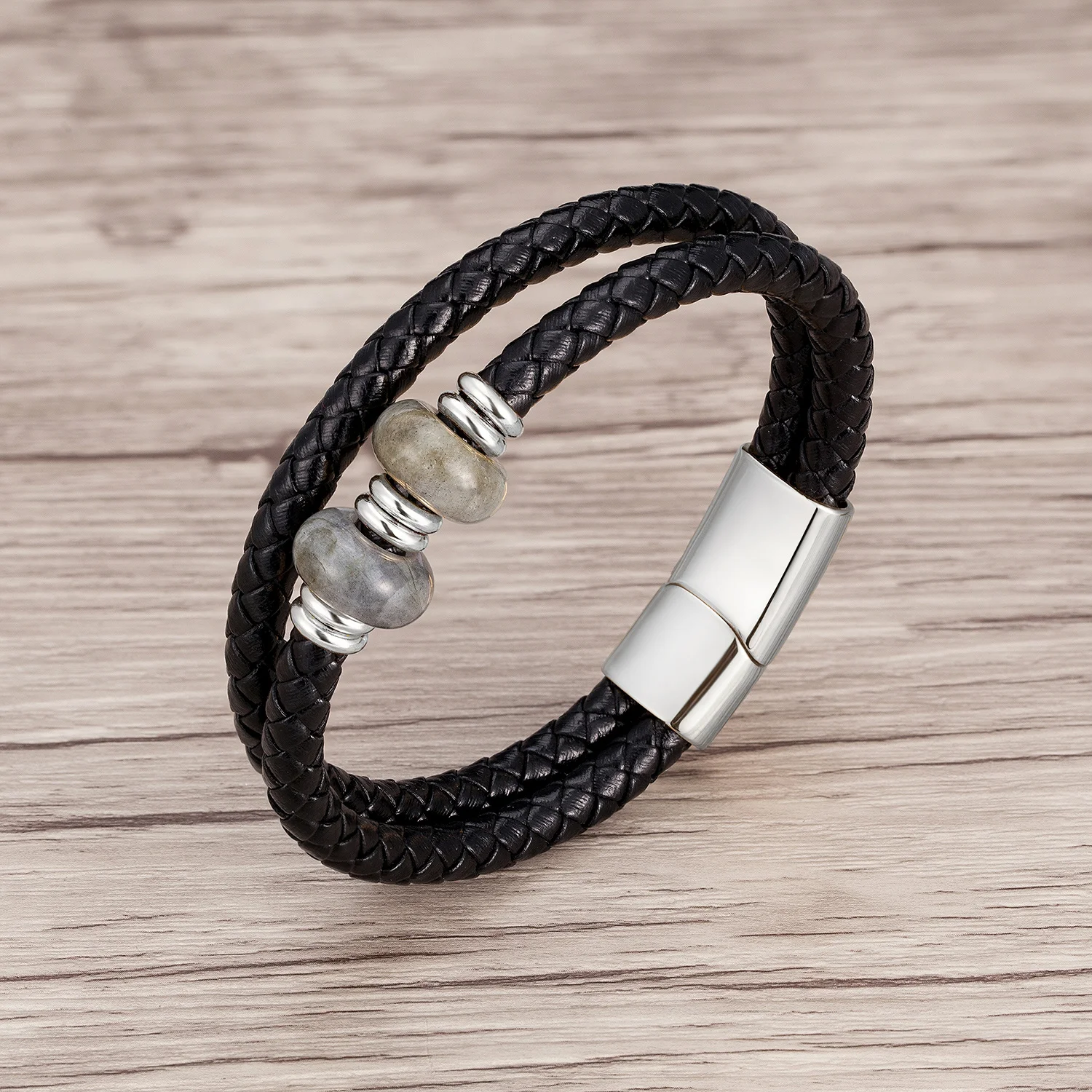 Классический многослойный мужской кожаный браслет из нержавеющей ст...