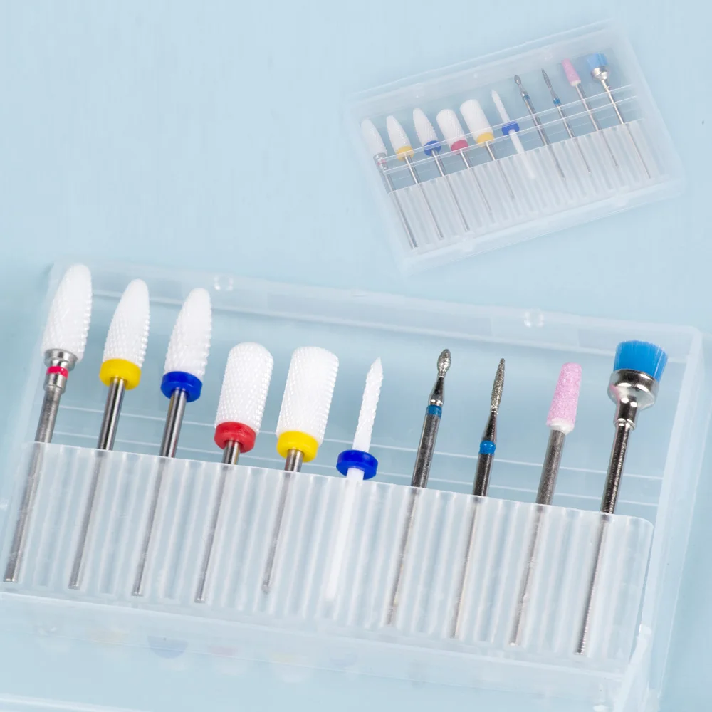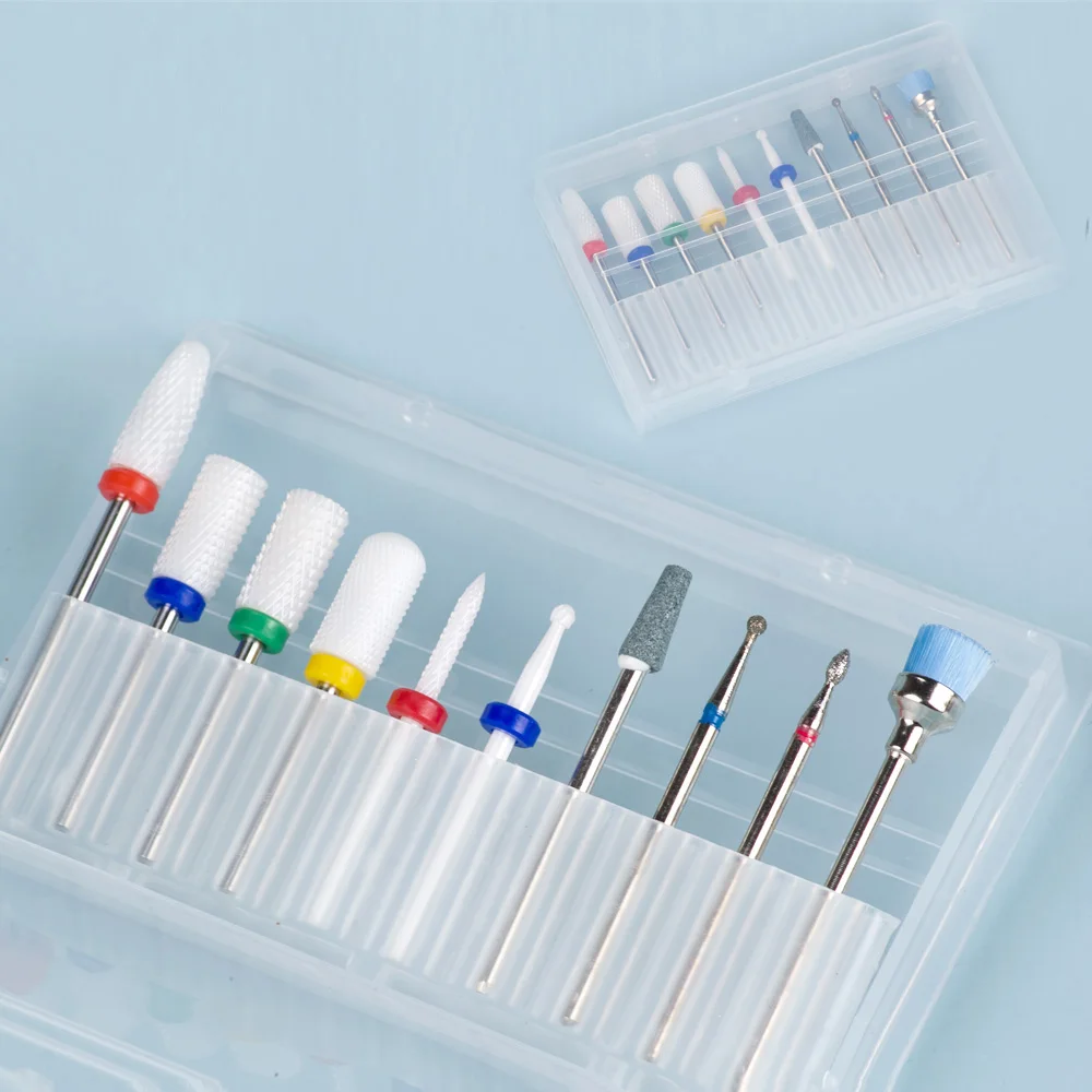 7/10/20 штук вращающийся лак для ногтей сверло упаковано в пластиковый контейнер для хранения