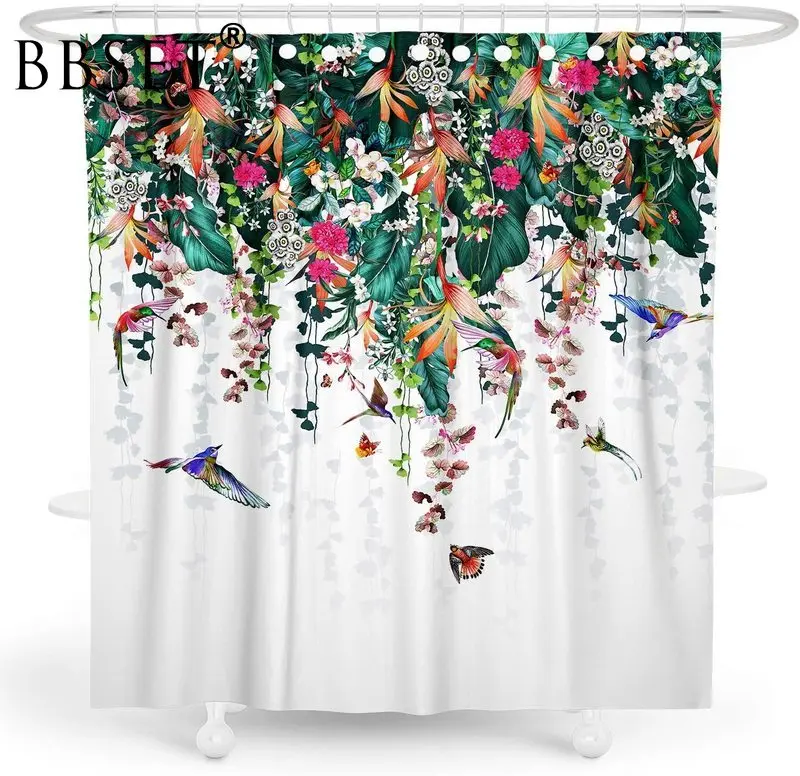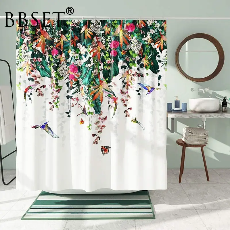 Летняя занавеска для душа с цветочным рисунком, цветные лозы и птицы, водонепроницаемая, разных размеров, Douchegordijn, декор для ванной комнаты