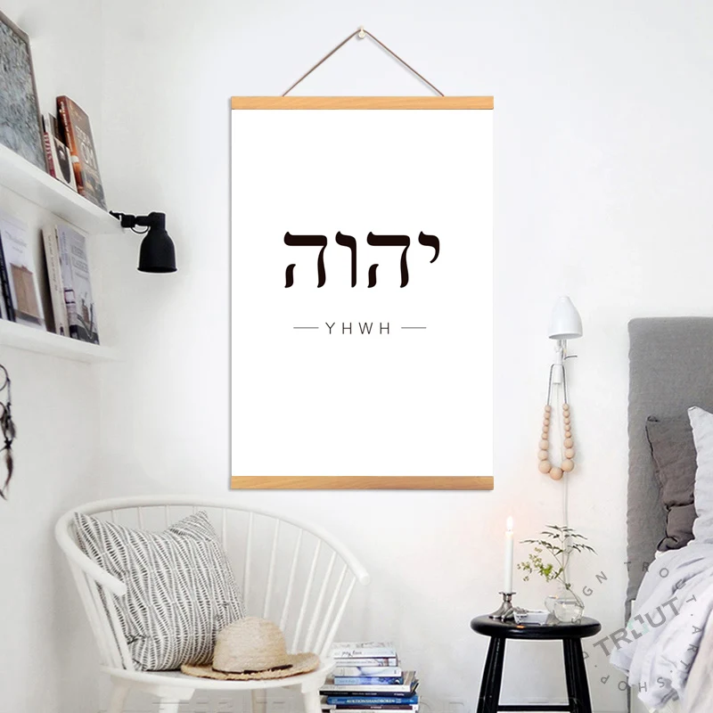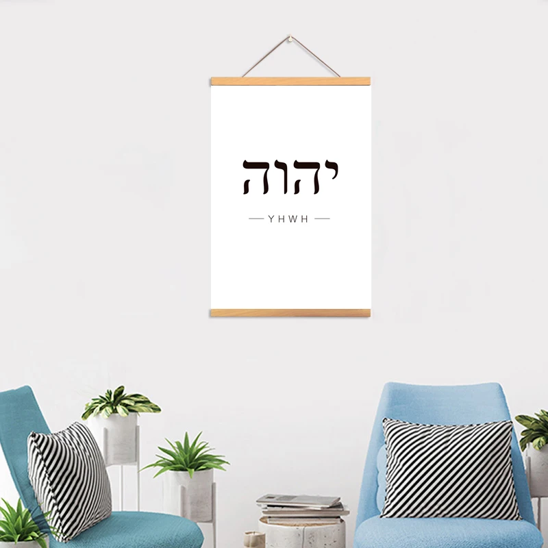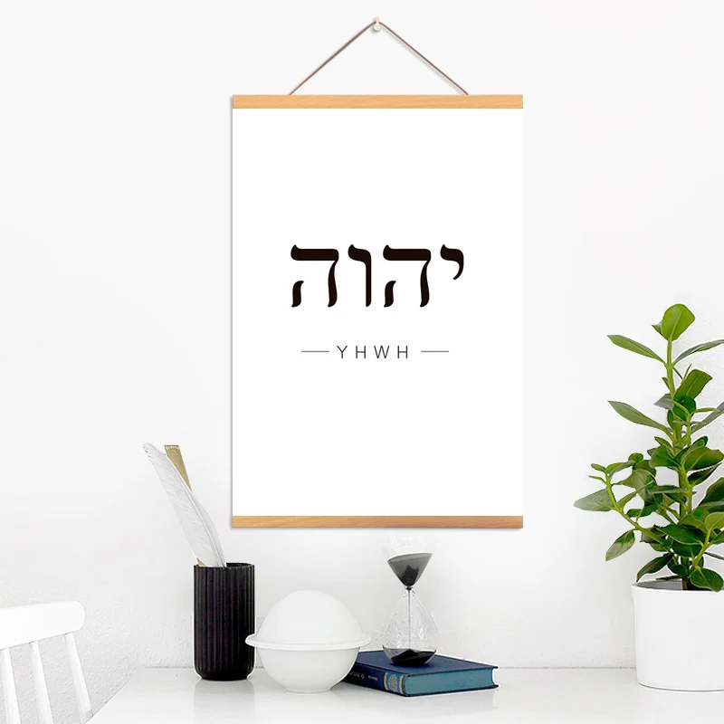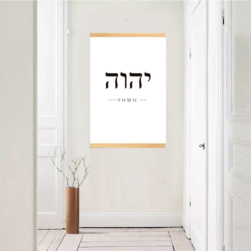 YHWH висячий постер с деревянной рамкой, принт на иврите с надписью, прокрутка, картина, готовая к еврейской стене, искусство для домашнего декора