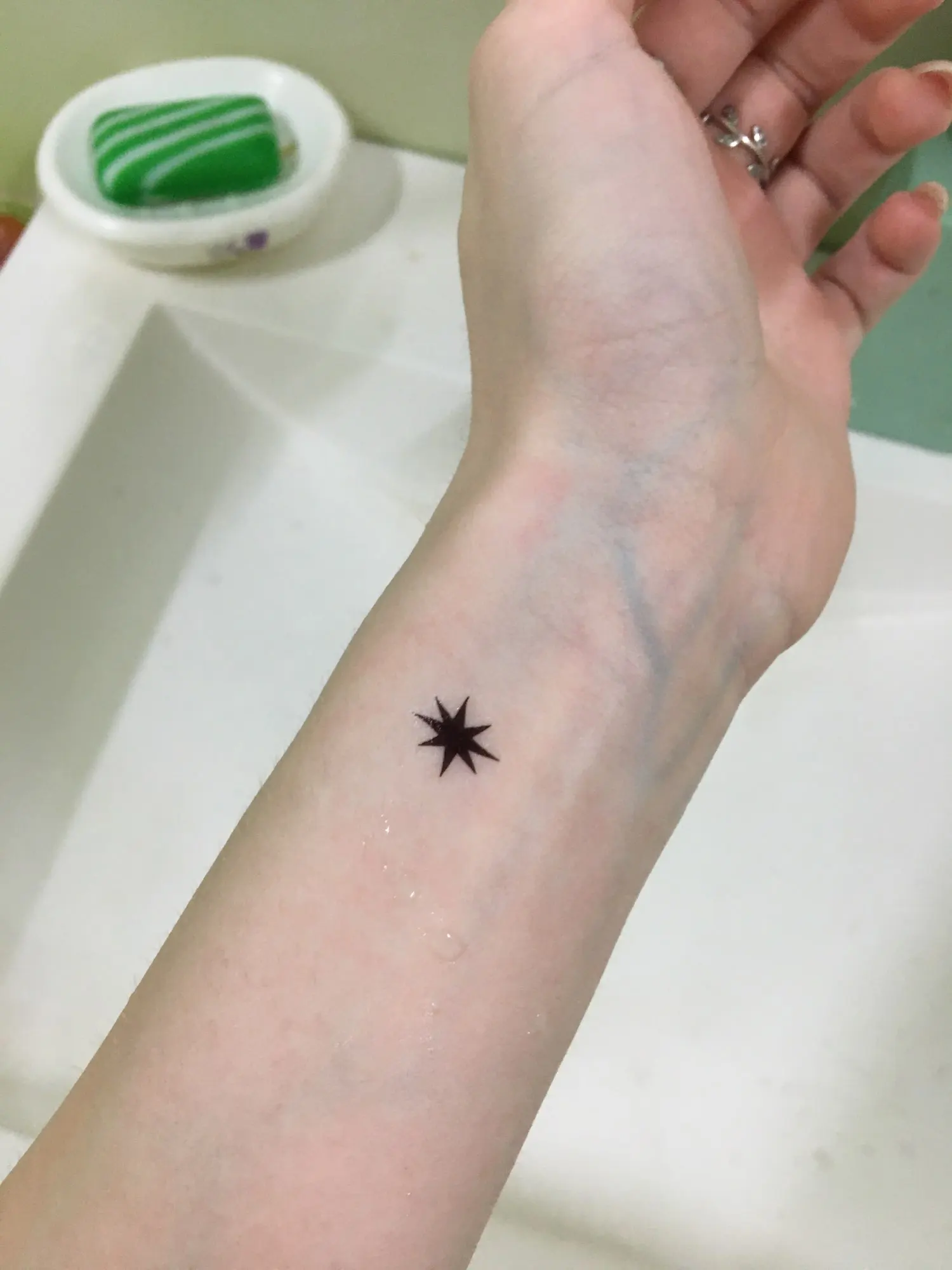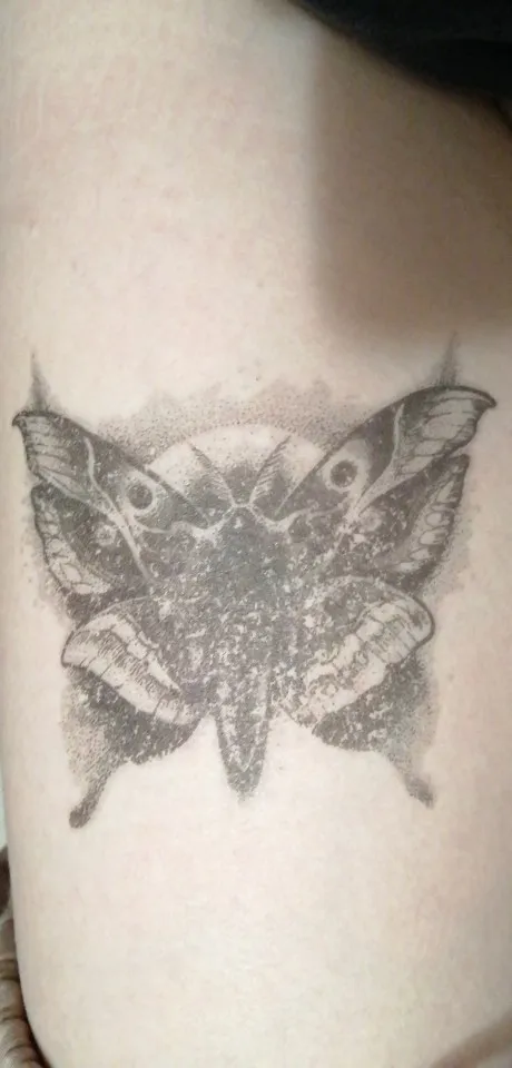 Спустя неделю носки... Тёрла мочалкой, скрабами, расчёсывала ногтями, но избавиться сложно. Идеально! Первый день блестело как наклейка, но после душа всё прошло. Ярче натуральной тату. Буду заказывать ещё!!! Увы фото свежей тату не сделала...