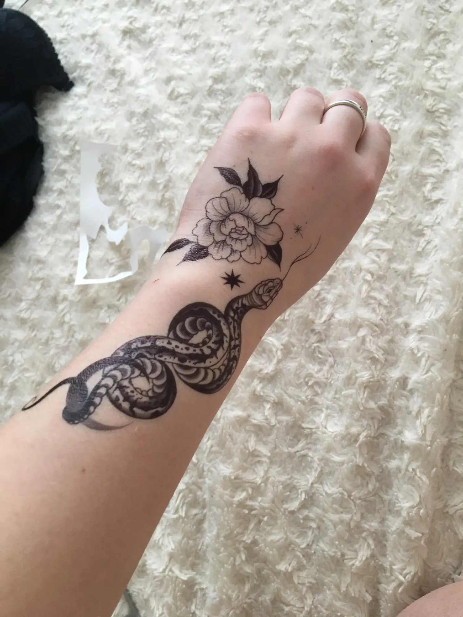 татуировки временные наклейки тату Водостойкая временная татуировка, наклейка, Ранняя школа, искусственная татуировка, змея, роза, боди-арт на руку, искусственная татуировка для женщин и мужчин