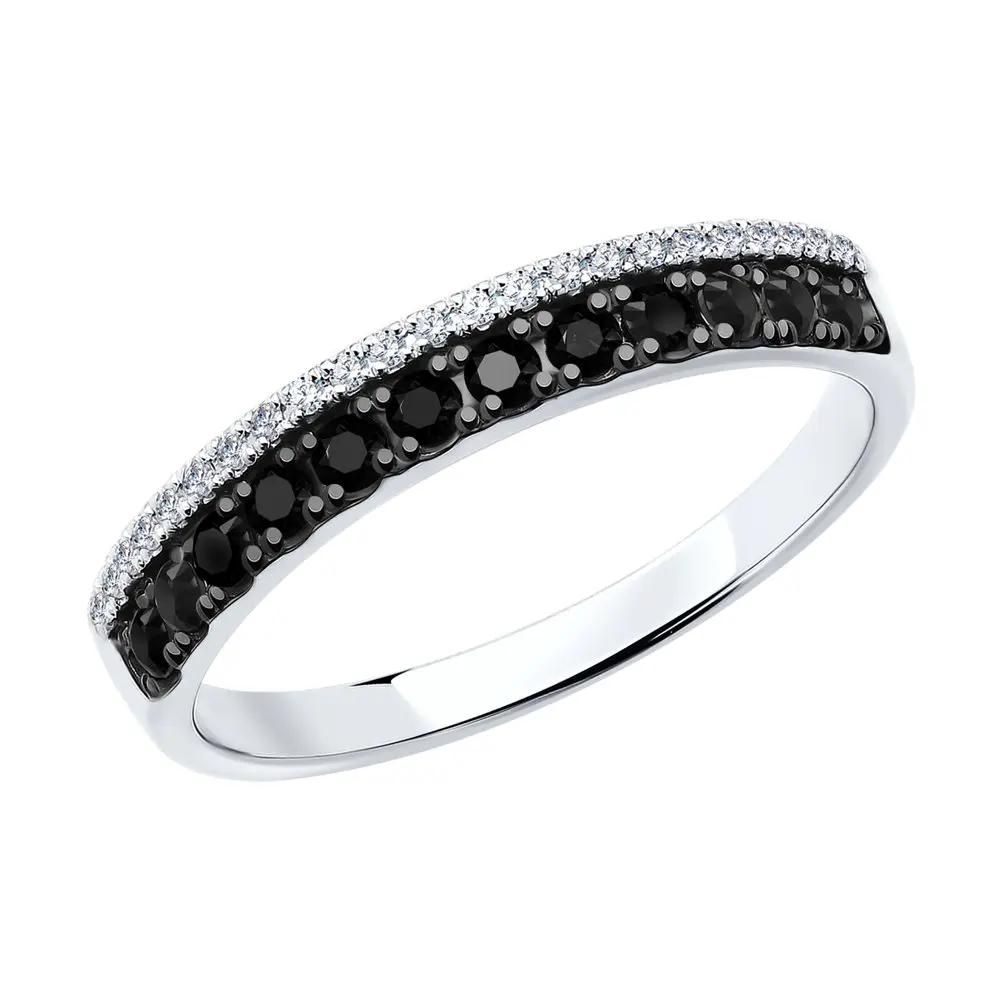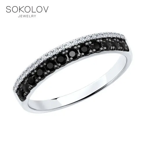 Серебряное кольцо с чёрными фианитами SOKOLOV, Серебро, 925, Женско...