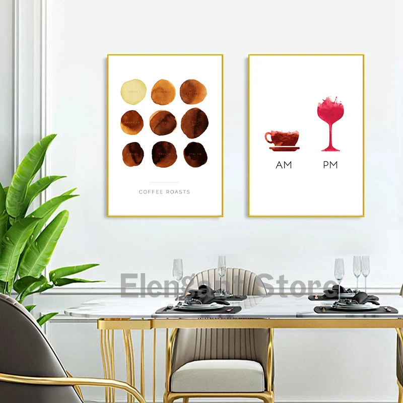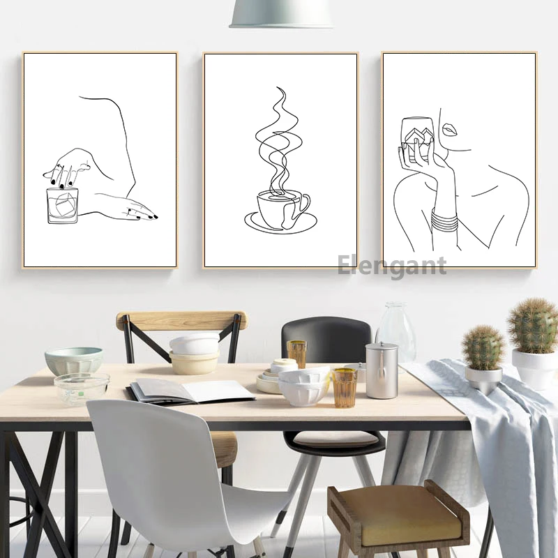 AM Coffee PM винная абстрактная линия художественные принты черный белый минималистический скандинавский постер кофе Настенная картина на холсте Декор бара паба