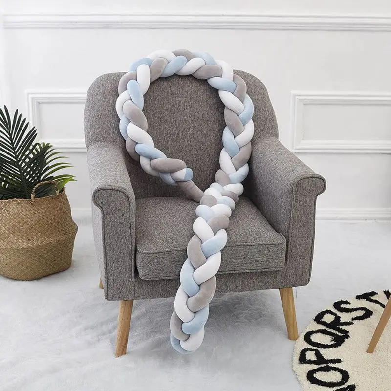 Плюшевая подушка с плетеным Бампером для детской кроватки, для маль...