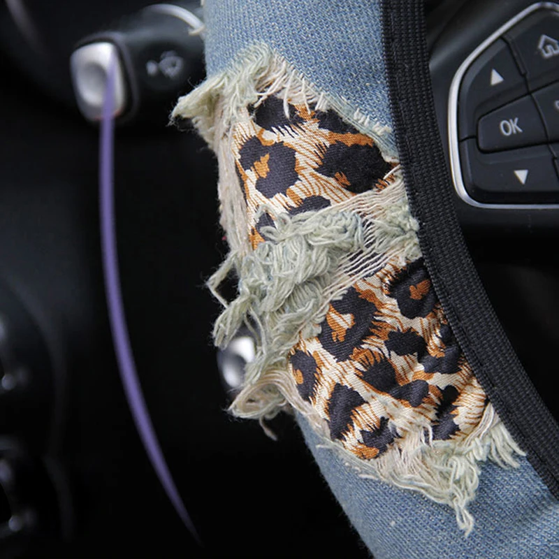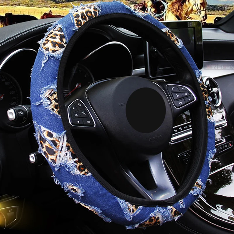Модный автомобильный чехол на руль, джинсовый Леопардовый принт, 4 стиля, Volant, для девушек, милые, крутые, для автомобиля, без внутреннего кольца