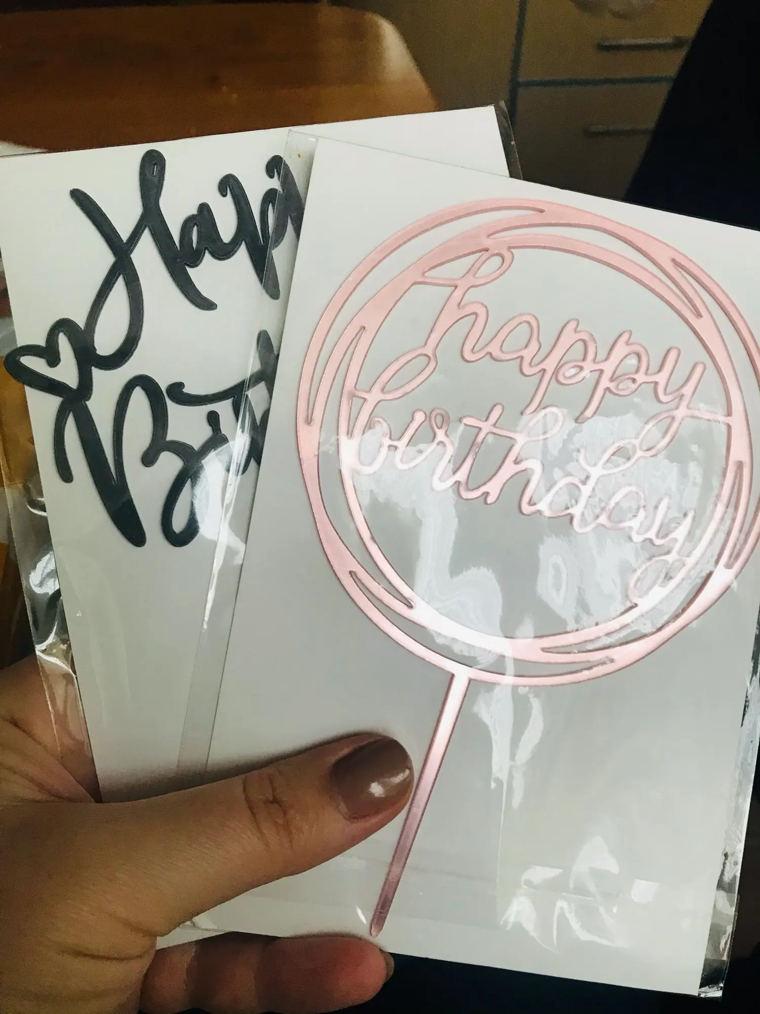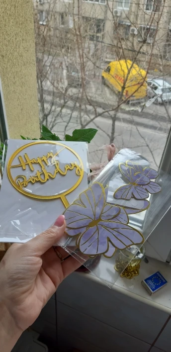 Топперы хорошие, но немного маленькие. Заказывала розовый и золотой, для сравнения на фото серебрянный топпер от другого продавца, ожидала такой размер.. Точного размера в описании нет. Плюс розовый топпер светлее, чем на фото. Но в целом довольна, но небольших тортиках будут хорошо смотреться!