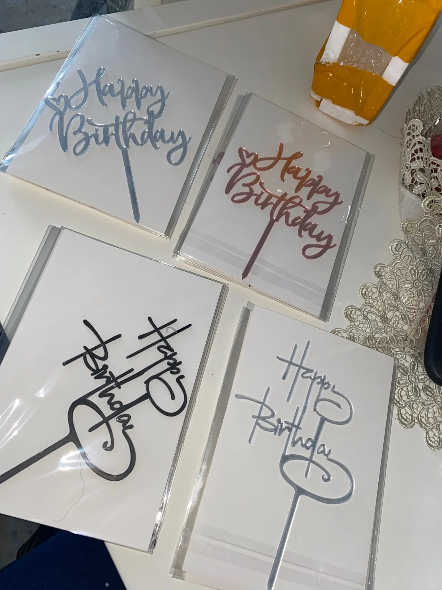 Я очень довольна. Отправили быстро. Сумма на упаковке указана меньше. Топперы завернуты в пенопласт, поэтом дошли в целости и сохранности. Единственное, продавец чуточку ошибся с цветом, вместо синего топпера отправил чёрный, но для меня это не критично. Звезду за это не снимаю, буду заказывать ещё