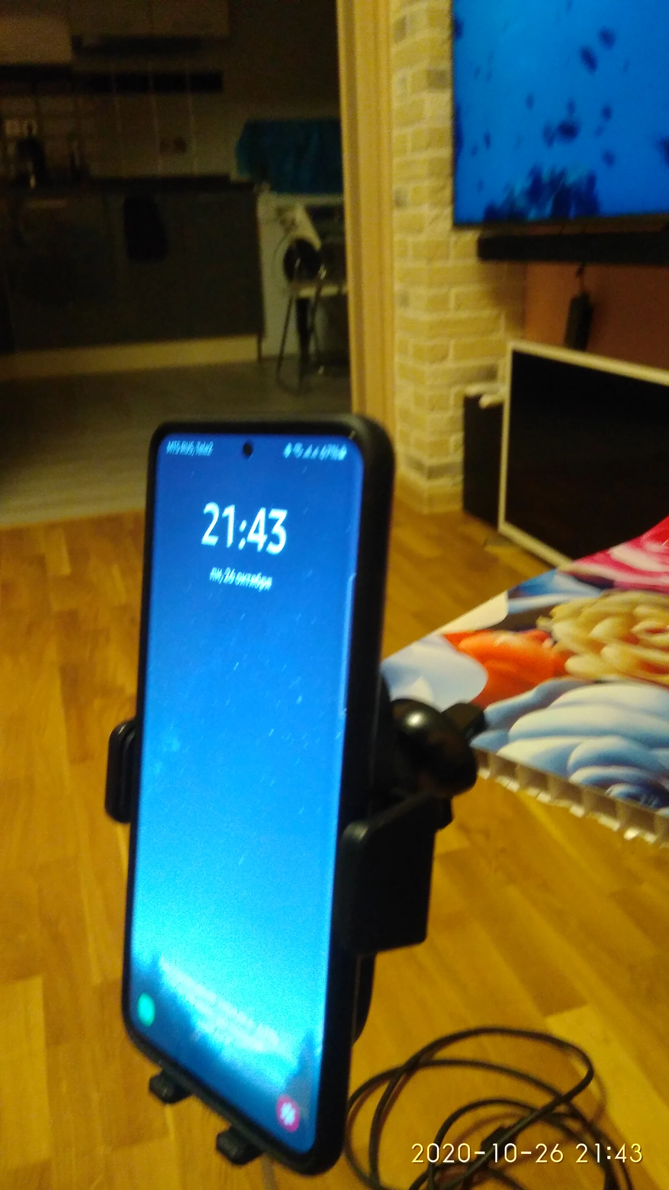 Очень хороший держатель для телефона. Быстрая Беспроводная зарядка работает с samsung Galaxy note 20