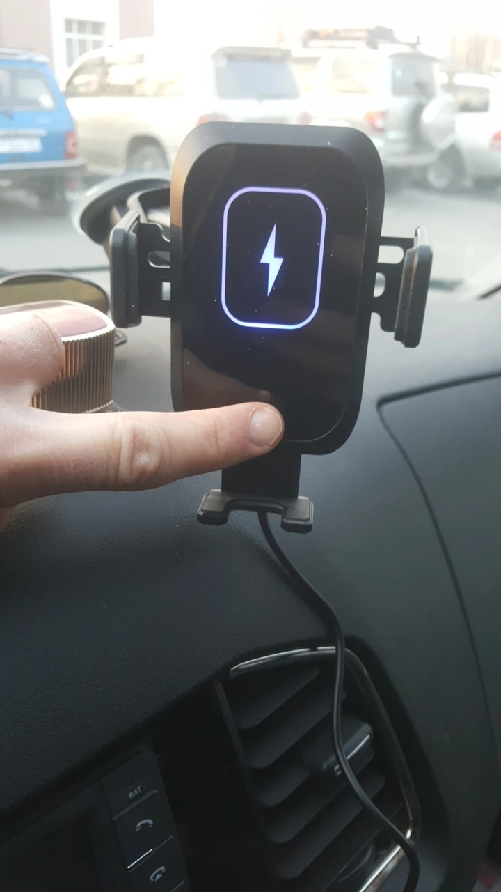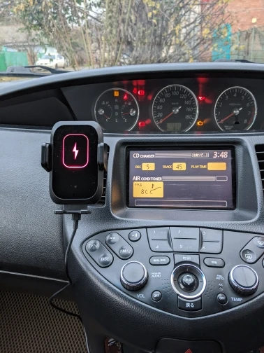 Маленькое крепление на решетку воздуховода держится не очень хорошо, но приспособиться можно. Немного раздражает постоянно переливающаяся разноцветная подсветка. Но в целом устройство отличное, заряжает отлично