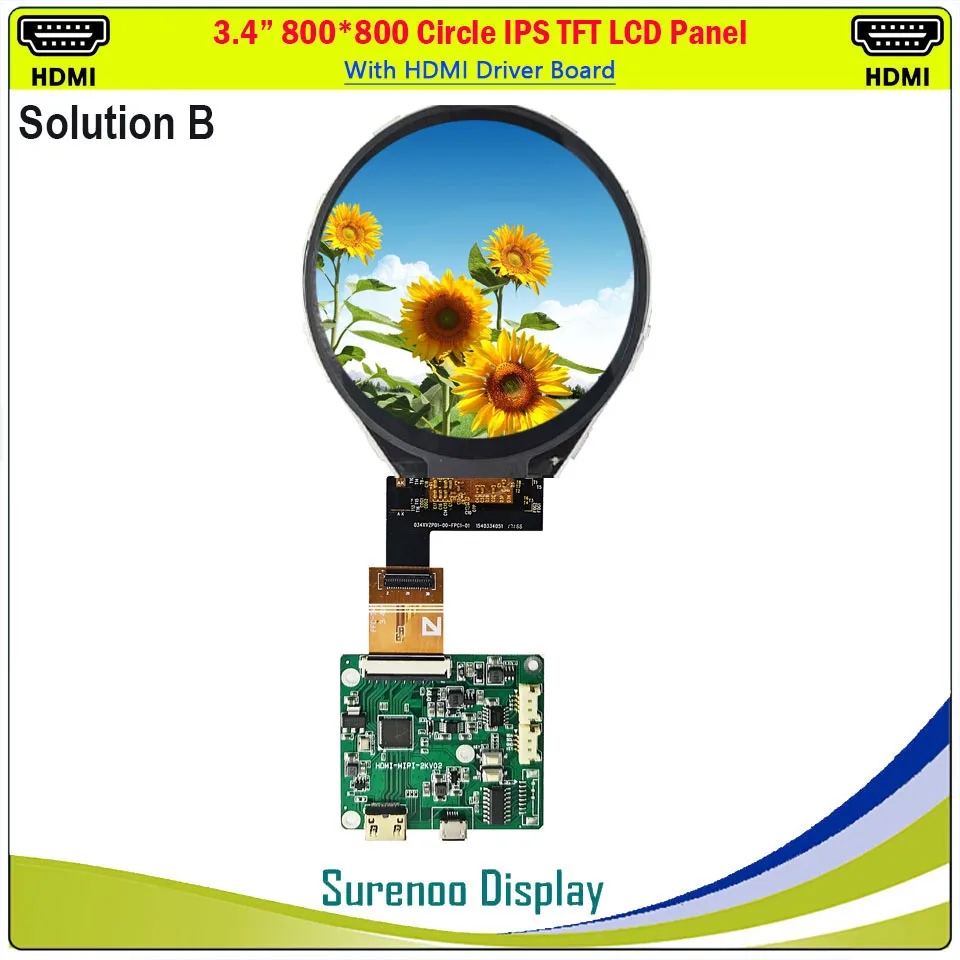 ЖК-модуль с двойным круглым IPS TFT, 3,4 дюйма, совместимый с HDMI, 800*800, LCM TM034XVZP01