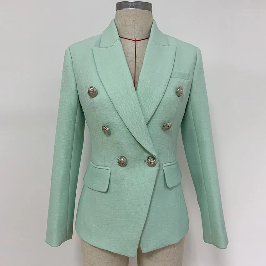 Женский двубортный блейзер в стиле барокко, мятно-зеленый классичес...