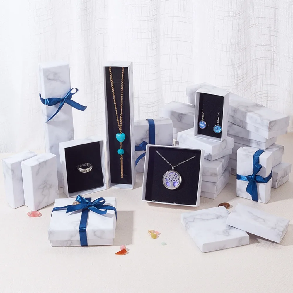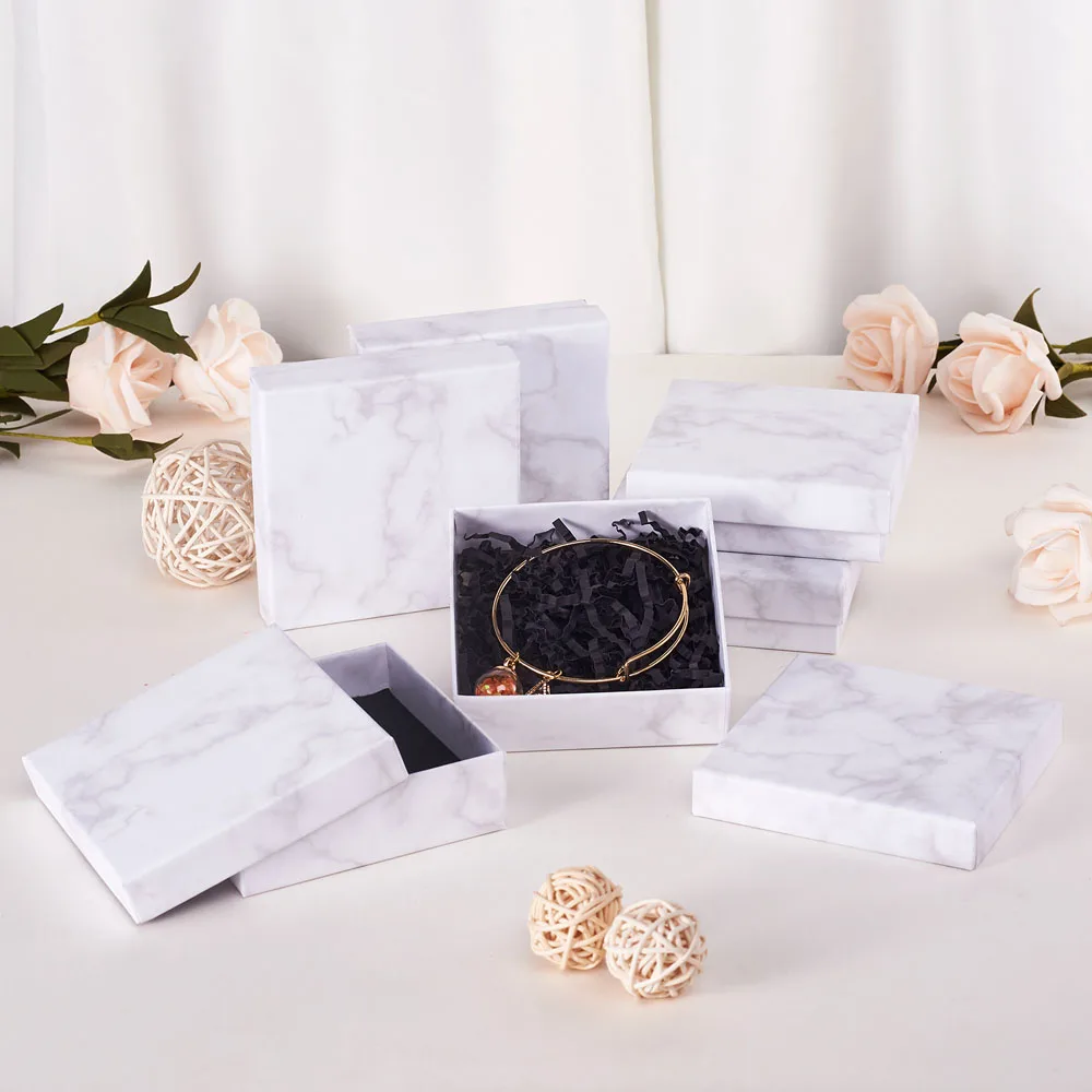 Pandahall 24 шт набор ювелирных изделий из картона браслеты ожерелья кольца коробки квадратные прямоугольные Крафт Хлопок Заполненный картон бумага белый