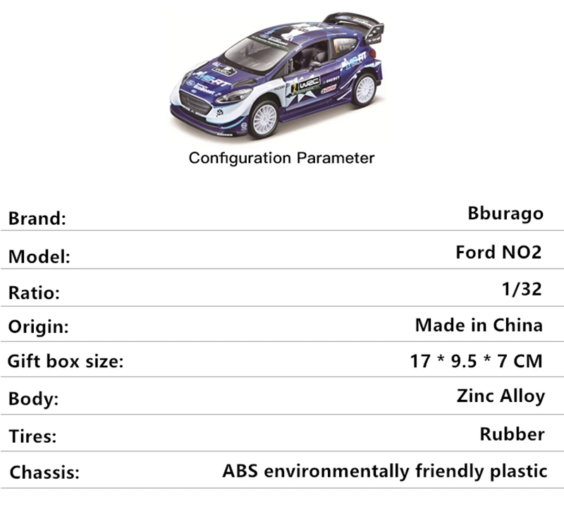 Модель автомобиля из сплава Bburago 1:32 2017 M-Sport Ford Fiesta NO2 WRC
