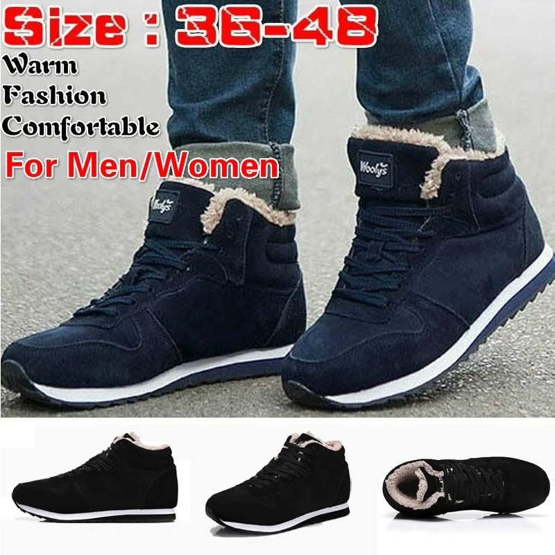 Мужские зимние ботинки, теплые кроссовки из кожзаменителя с теплым мехом, большие размеры 35-48