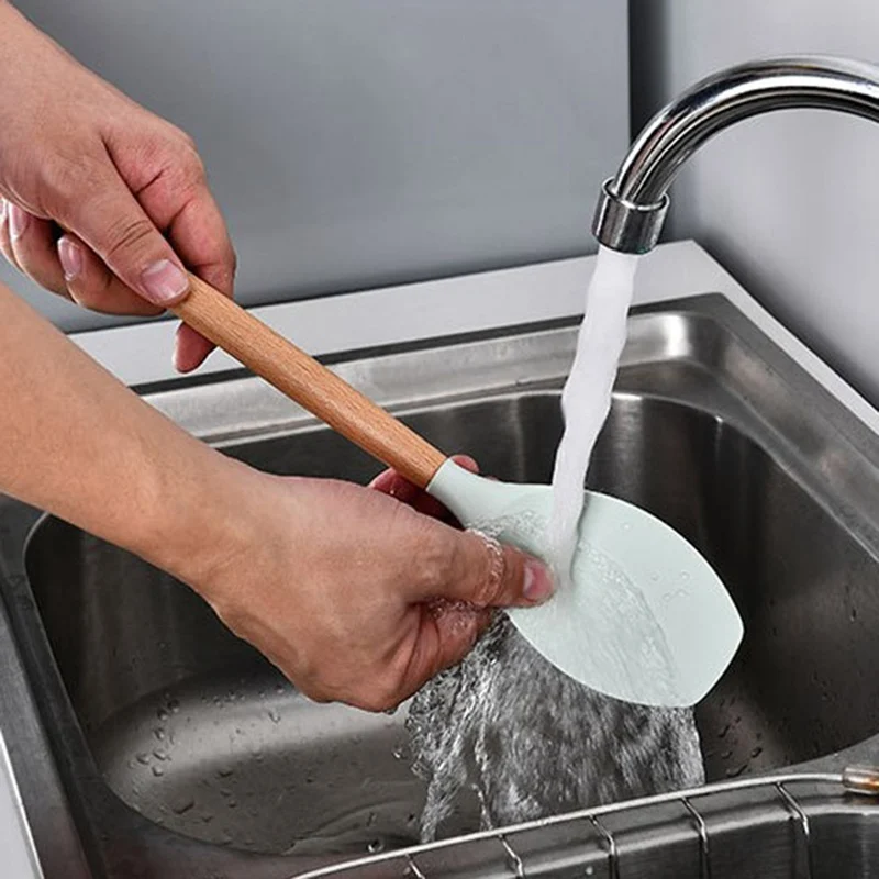 Зеленый силиконовая посуда кухонные приборы Набор инструментов дере...