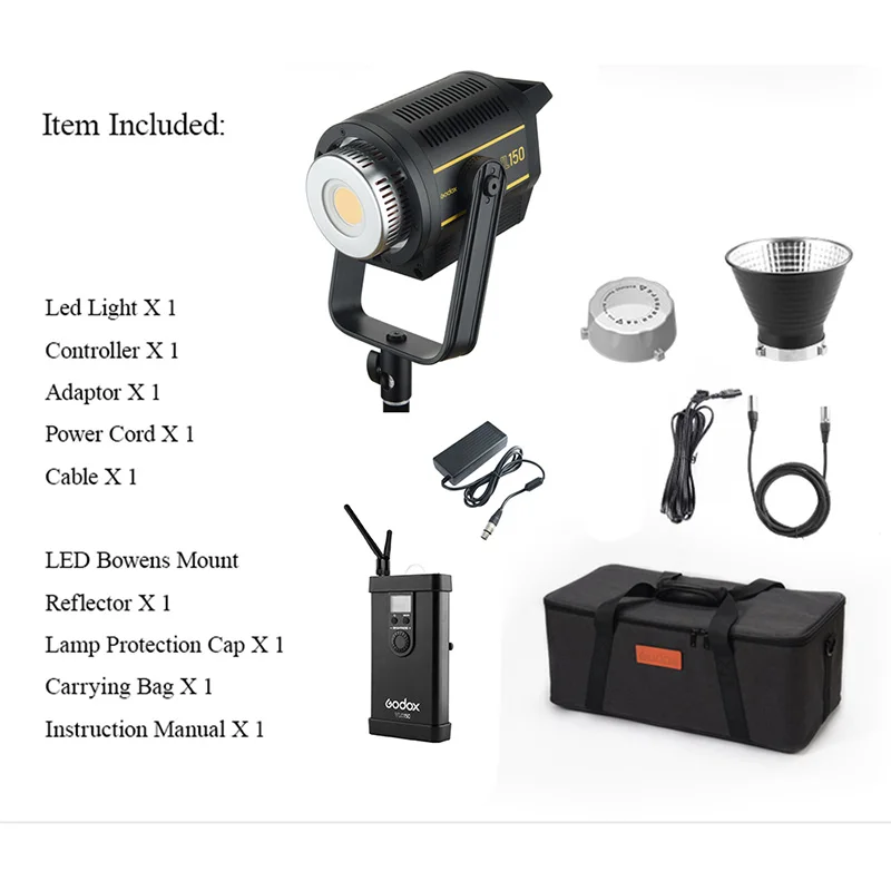 Светодиодная лампа для видеосъемки Godox VL150, 150 Вт, 5600K, белая версия, непрерывный выход, крепление Bowens, студийное освещение, Поддержка приложения