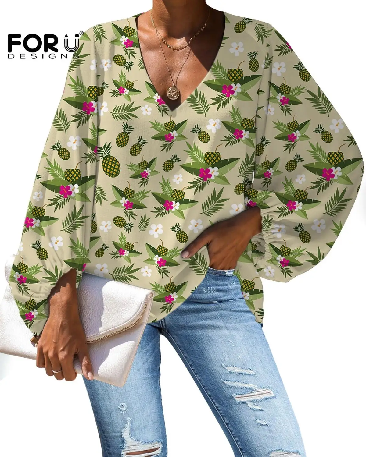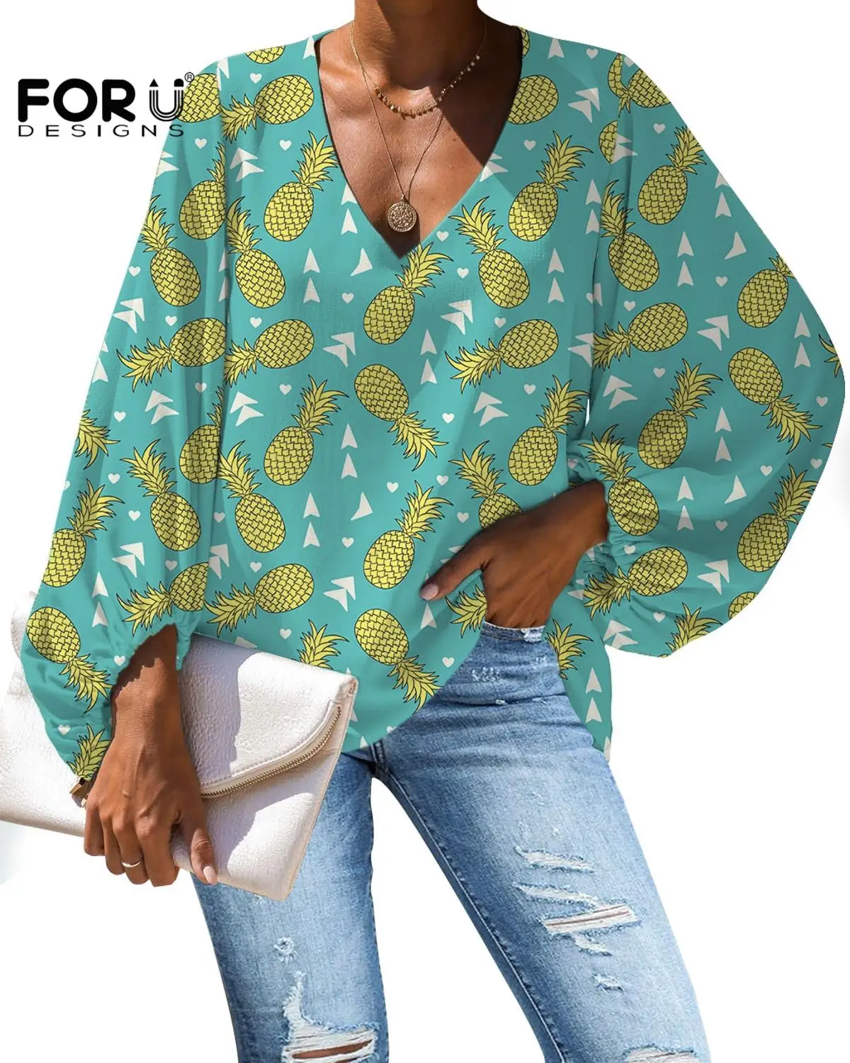 FORUDESIGNS, тропический ананас, милый мультяшный принт, бесшовная блузка в стиле Харадзюку для женщин, повседневные модные Универсальные синие Топы