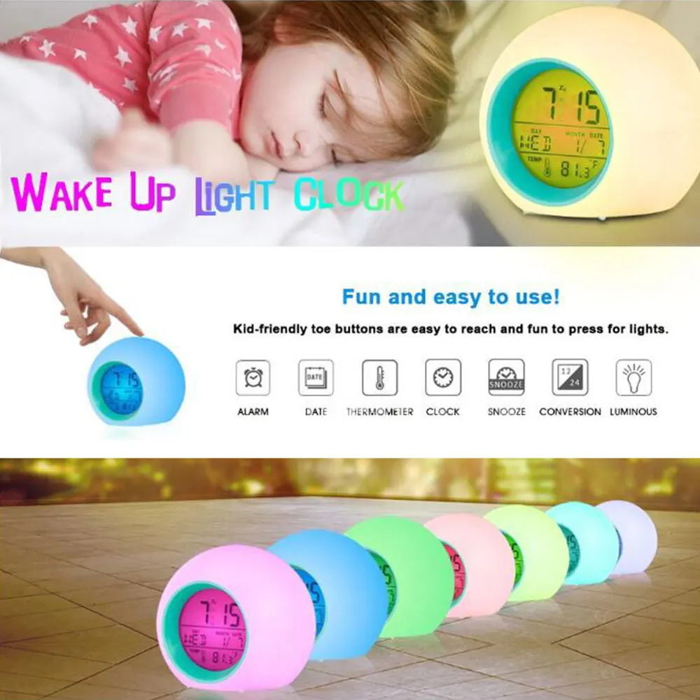 Цифровой будильник, 7 цветов, светодиодный, заряжаемый, для детей, ...