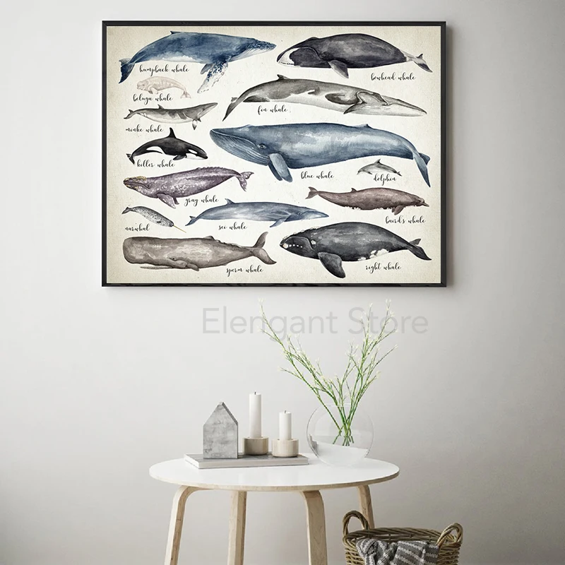 PurposeWhales of the World Educational Pictures Art Painting Decor