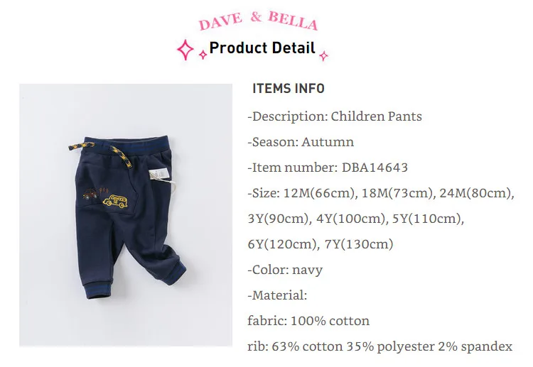 DBA14643 dave bellaосенние модные штаны с карманами для маленьких мальчиков детские длинные штаны брюки для малышей