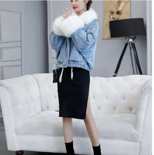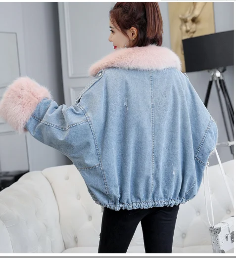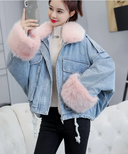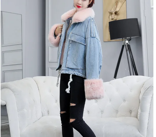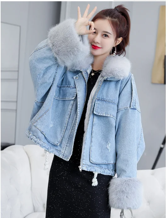 Новинка 2022, зимняя джинсовая куртка, женская джинсовая куртка с мягкой меховой подкладкой, меховой воротник, верхняя одежда, винтажная ткань, свободные толстые теплые джинсы
