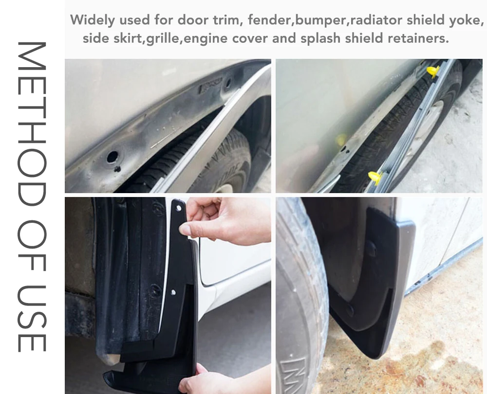 Изготовлен из экологически чистого пластика, который является высококачественным и прочным для использования. Эти заклепки для бампера изготовлены из пластика, не ржавеют и не гниют. Можно использовать в течение длительного времени. Он очень прост в использовании, это нажимной тип, заклепки надавливаются на ноги, легко устанавливается быстро. Они используются для обрезки зажимов панели, зажимы-пистоны для закрепления дверной обивки, дверные панели зажимов, бампер зажимы, зажимы автомобильного крыла, крышка двигателя и брызг щит фиксаторы замены. Эти зажимы подходят для надежного удержания чего-либо в отверстии подходящего диаметра. Характеристики: Цвет: Случайный цвет смешивания Материал: пластик Размер: много типов случайного смешивания