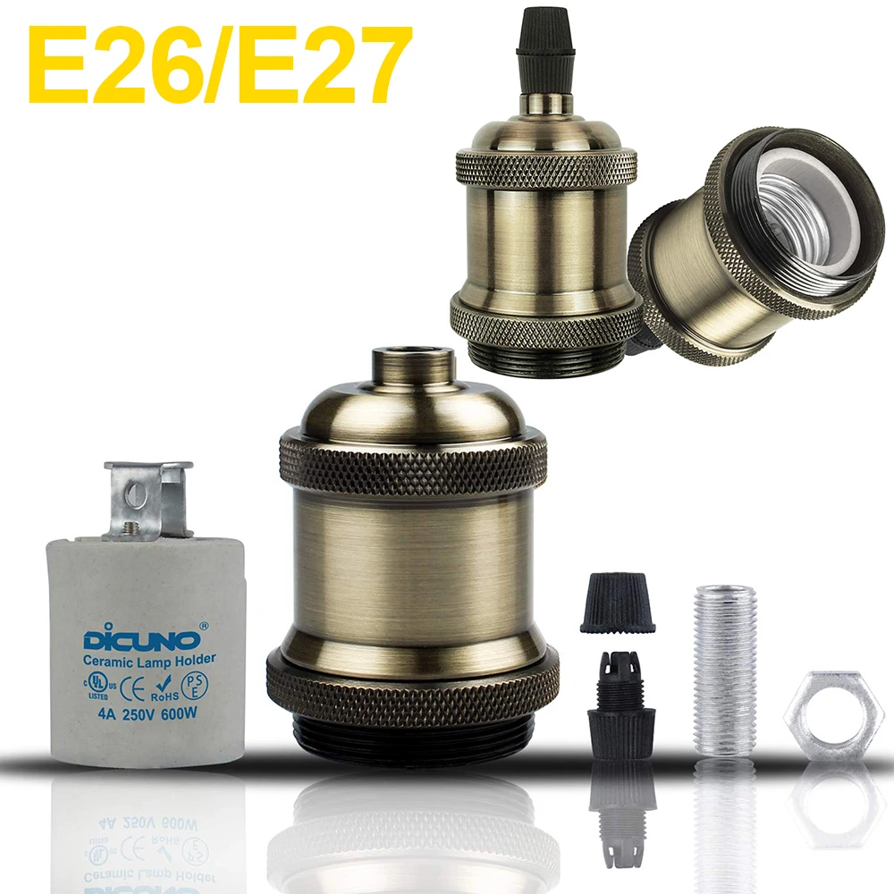 Описание: E26/E27 Винтаж разъем, ручная работа, антикварной и промышленных внешний вид, совместимый с E26/E27 средней лампы базового освещения особенно Винтаж лампочки Эдисона, подходит для декоративных DIY подвесной светильник в металлическом каркасе проектов. (Цвет: 6 смешанных цветов s) Особенности: [Высокое качество]: Сертификация CE и RoHS; [Прочный]: лампы могут удерживаться плотно; [термостойкий]: высокий до 600 ℃; [Материал]: алюминиевая крышка и керамический держатель лампы. Применение: 1) наиболее часто используется с лампами Эдисона E26/E27 в винтажном стиле и для подвесок, ретро-освещения. Создает античную и классическую атмосферу для современной жизни. 2) затемняемые лампы. Различные добавленные абажуры и регулируемая длина провода могут принести различные декоративные эффекты. Установка: Простота установки. Правильно Подключите провода к положительному/отрицательному полюсу, а затем Соберите все детали вместе. Инструкция по установке прилагается для справки.