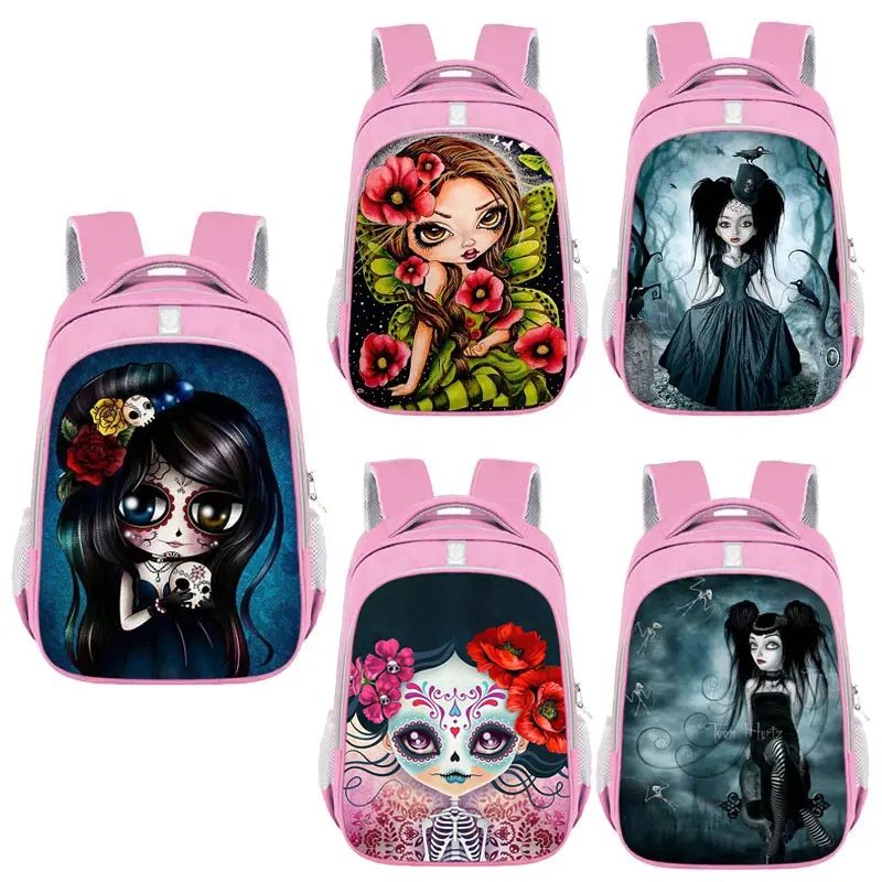 Рюкзаки для девочек в готическом стиле, детские школьные ранцы для девочек, Женский студенческий школьный ранец с мультяшным принтом, дорожная сумка для подростков