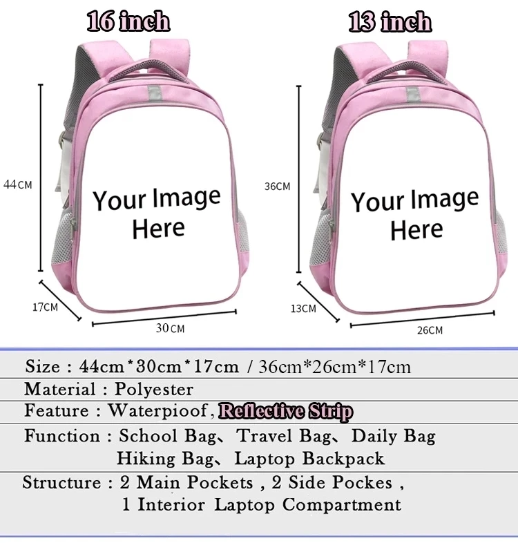 13 дюймов изготовленный на заказ Ваше имя образа Детский рюкзак дет...