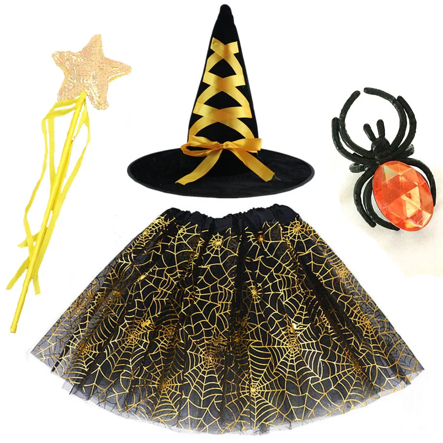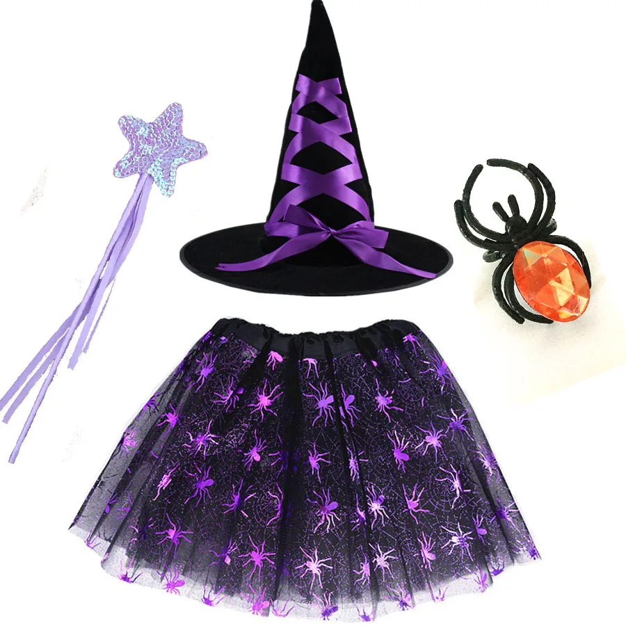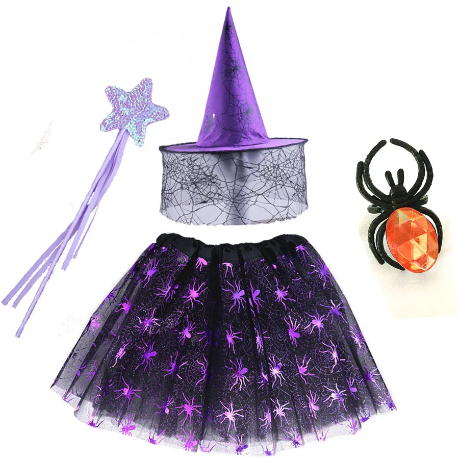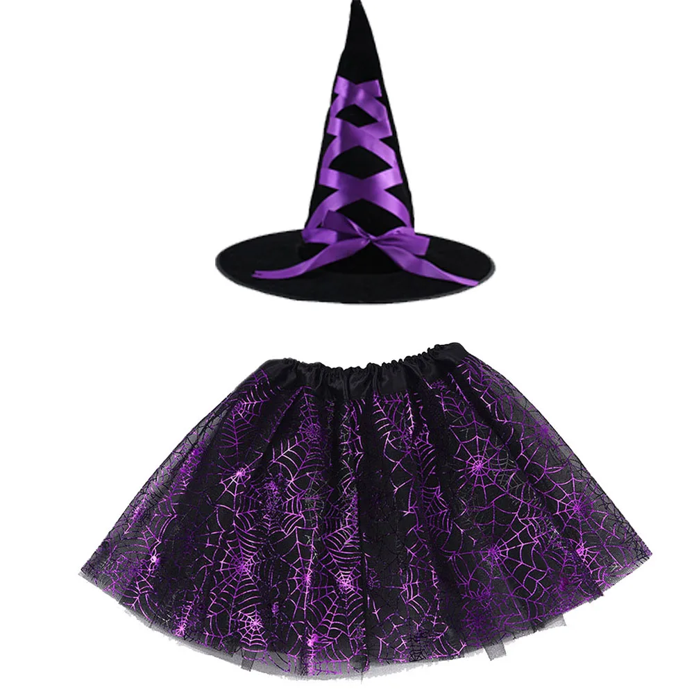 Пачка пачка паутина юбка ведьма колдун шляпа костюм Одежда для дня рождения костюм для вечевечерние НКИ карнавал Хэллоуин для детей девочек