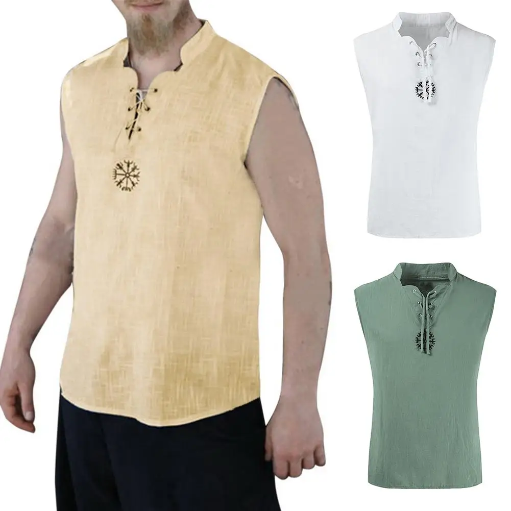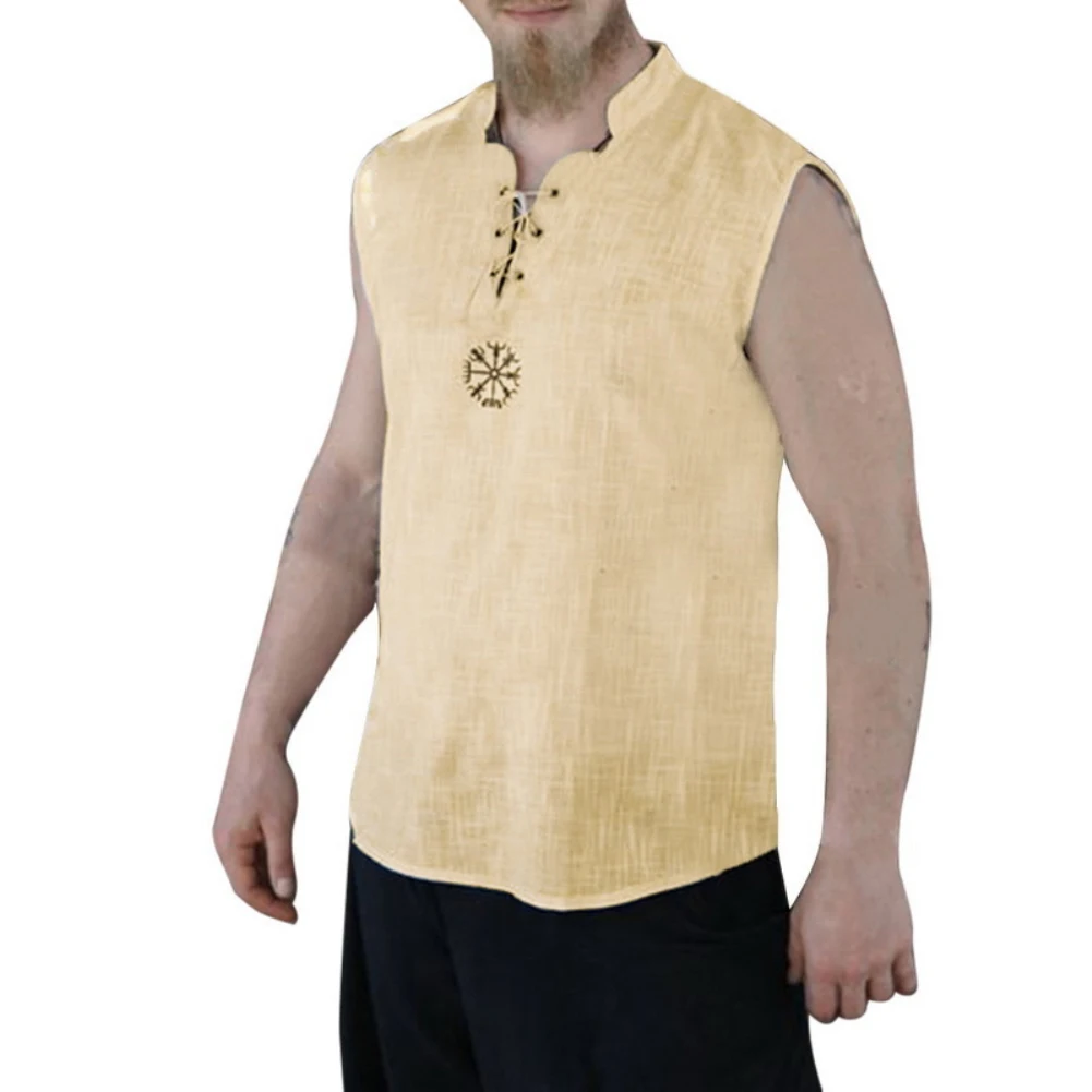 Футболка мужская с воротником-стойкой, стильная Свободная Повседневная рубашка с завязкой, без рукавов, с вышивкой, лето 2020