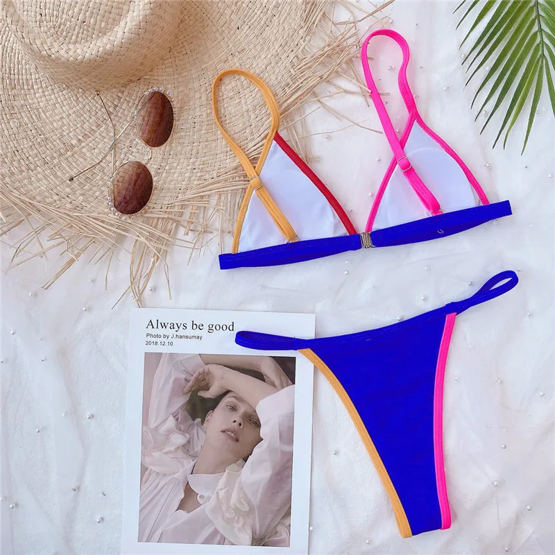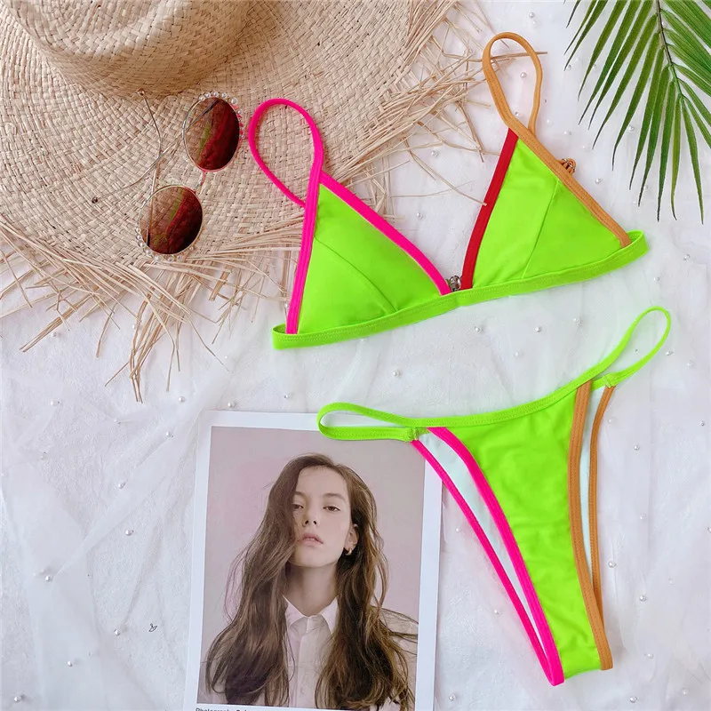 Бразильское бикини 2020, цветное бикини, купальник для женщин, купальник с высоким вырезом, треугольное бикини, сексуальный купальник, женский микро купальник, Новинка