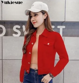 Джинсовые куртки женские базовые пальто 2020 Весна Осень Новая мода женские с длинным рукавом Твердые дикие повседневная верхняя одежда джинсовые пальто куртка