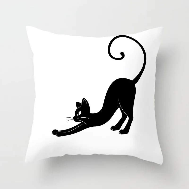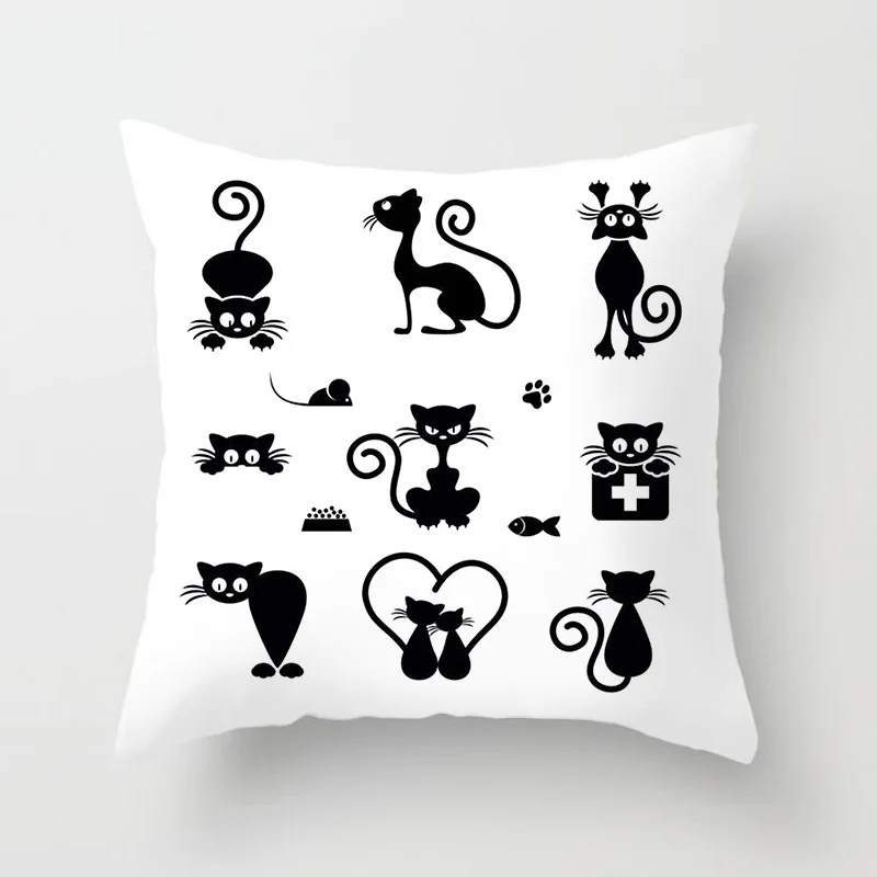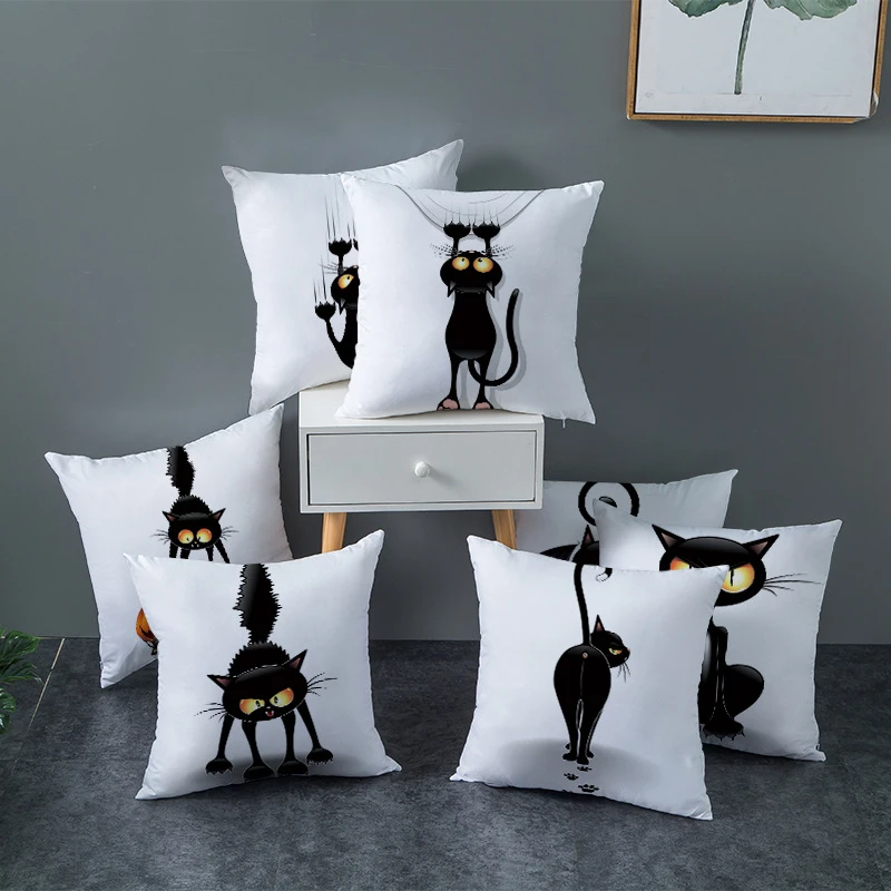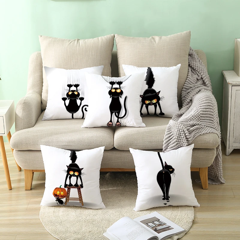 Декоративная Подушка Наволочка с рисунком черного кота, 45*45 чехол для подушки из полиэстера, диванная подушка, декоративная наволочка для дивана, 40856