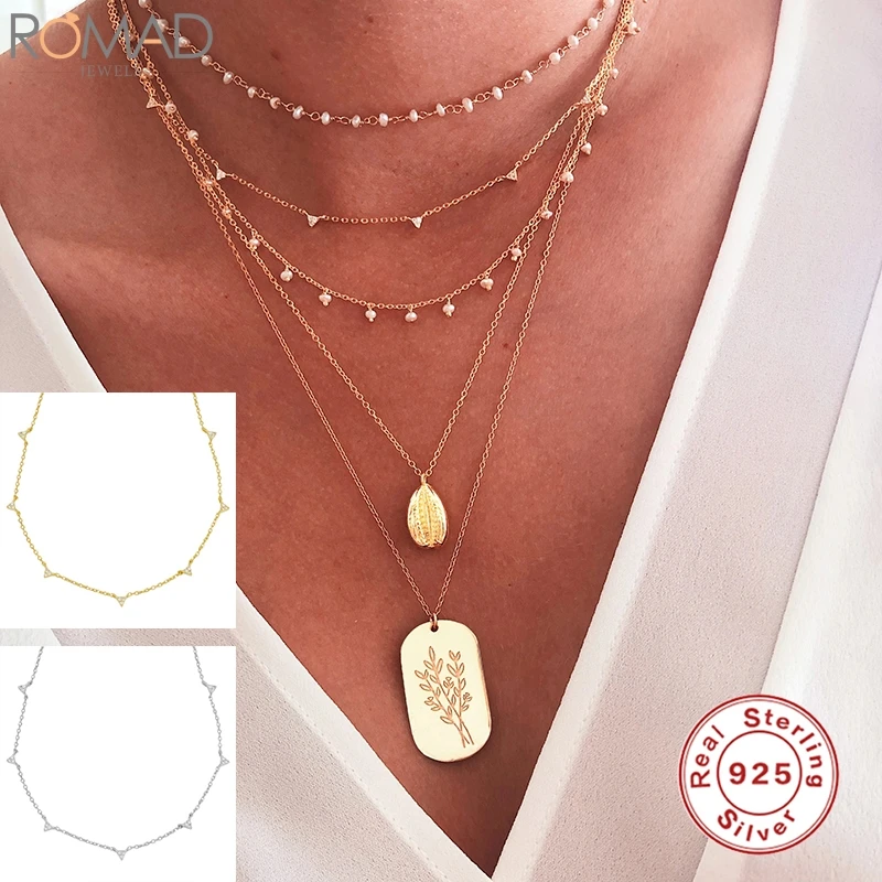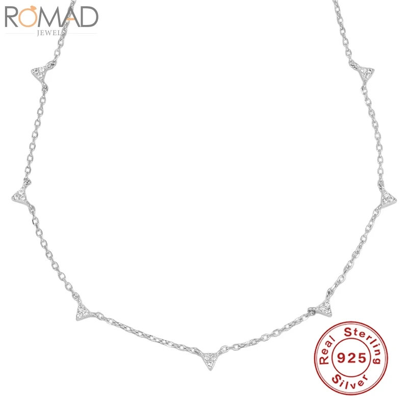 Женские ожерелья из стерлингового серебра 925 пробы с треугольными лепестками, цепочка на ключицу из циркония, ювелирное ожерелье с листьями и листьями