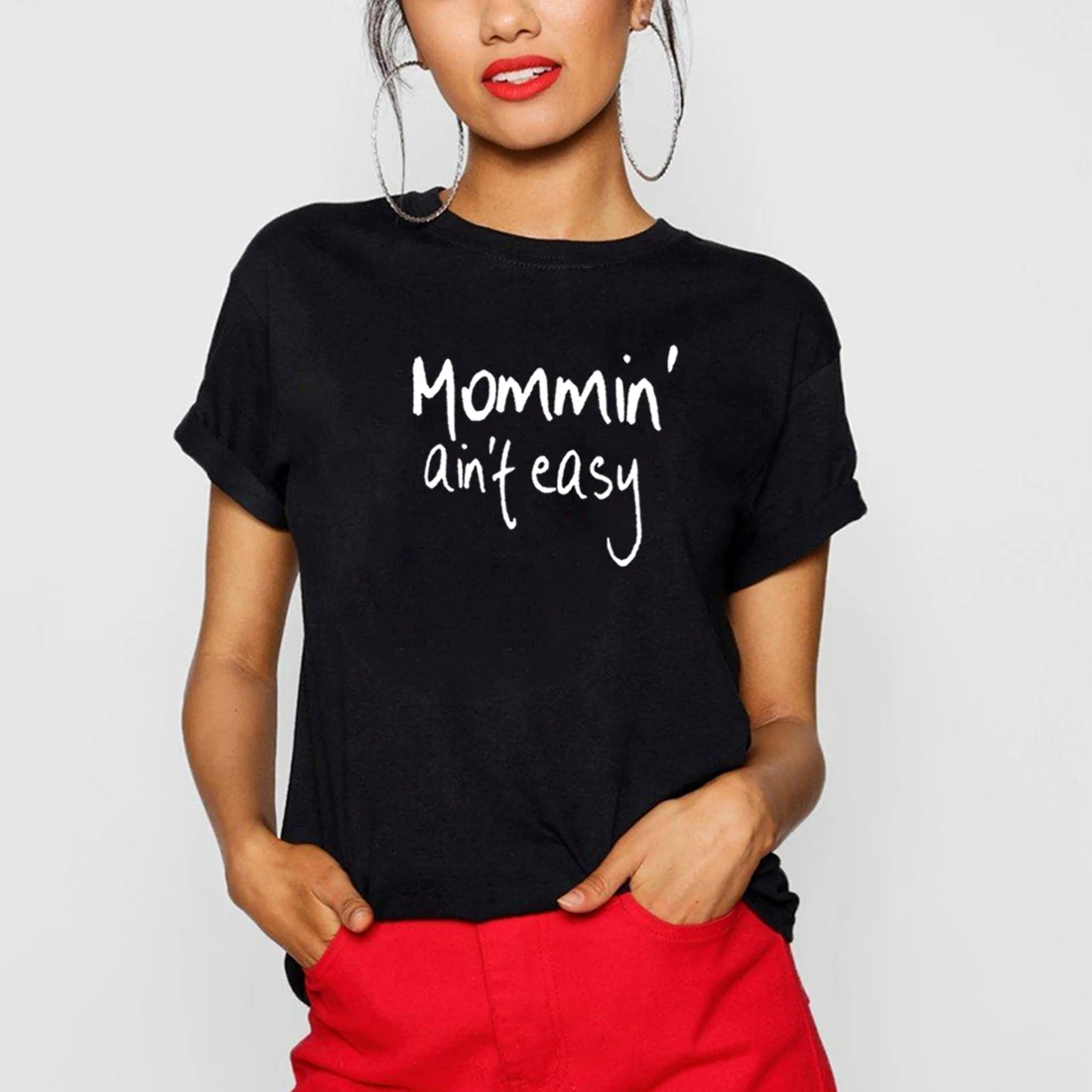 Забавная футболка Mommin Ain Not Easy, женский летний топ, Женская Повседневная футболка из хлопка с коротким рукавом