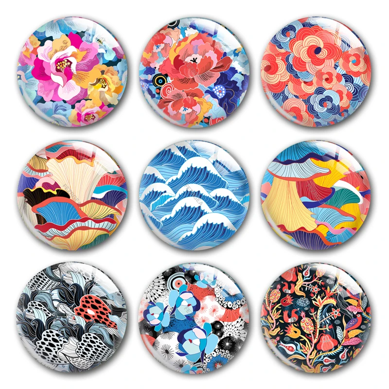 Круглые стеклянные кабошоны ручной работы в японском стиле с рисунк...