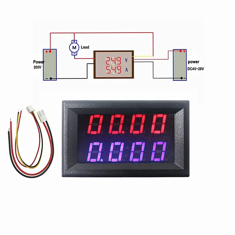 1 шт., цифровой вольтметр, 200 в, 0-10 А, амперметр, красный, синий светодиодный двойной дисплей для автомобильного монитора напряжения и тока, внешний шунт не требуется