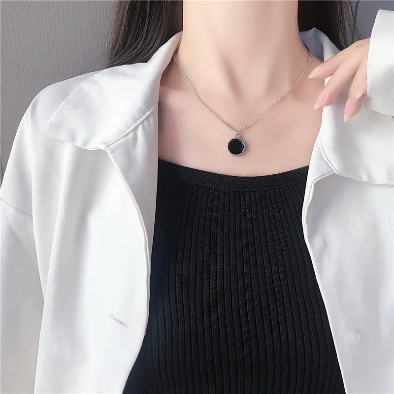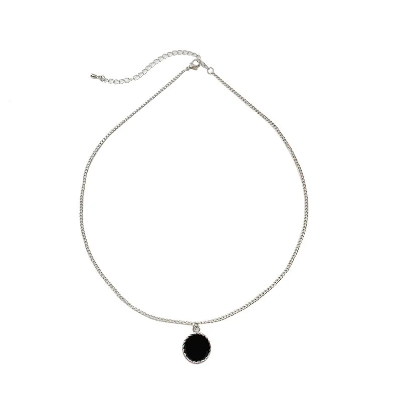 Ожерелье с подвеской-диском для мужчин и женщин, классическое готическое черное колье из металла, милое корейское колье с кулоном-диском, Подарочная бижутерия