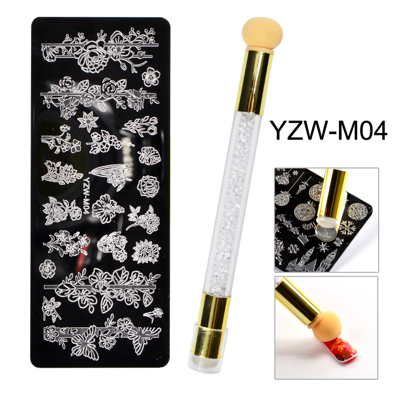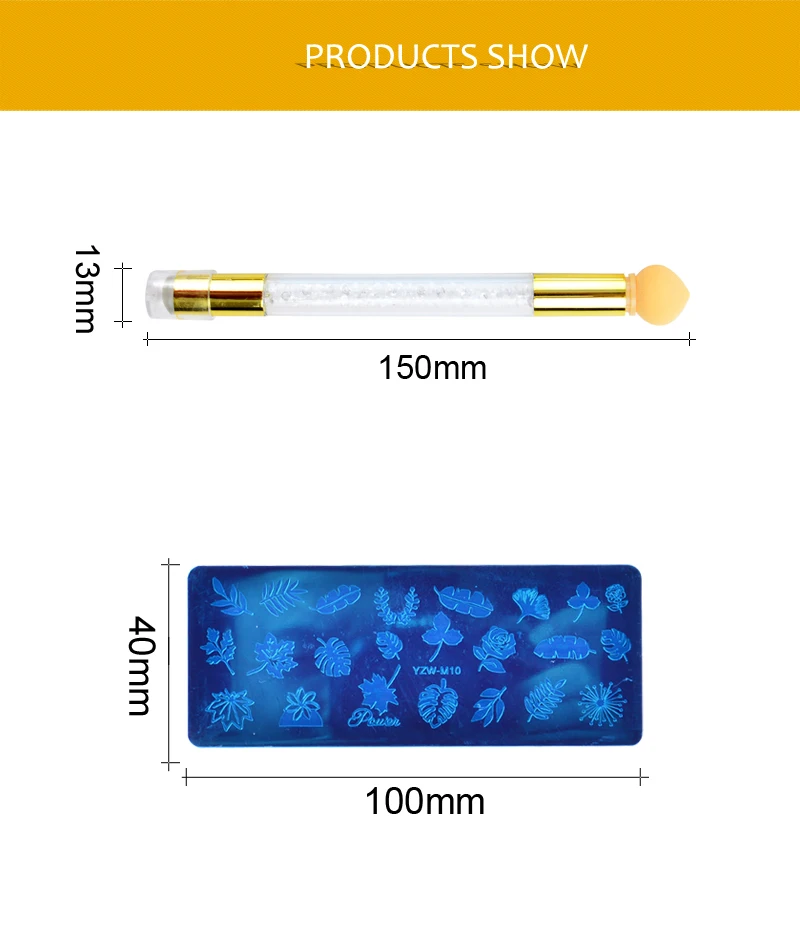 1 шт 10*4 см шаблоны для стемпинга ногтей + 1 шт ручкаИнструкции по использованию:1) Снимите защитную пленку2) Нанесите тиснение лаком на желаемый дизайн3) удалите излишки лака скребком под углом 45 °4) Возьмите дизайн с помощью штампа с помощью качения5) Нанесите штамп на ноготь с помощью движения прокатки6) Нанесите верхнее покрытие для более длительного эффектаРазмер: 12x6cm