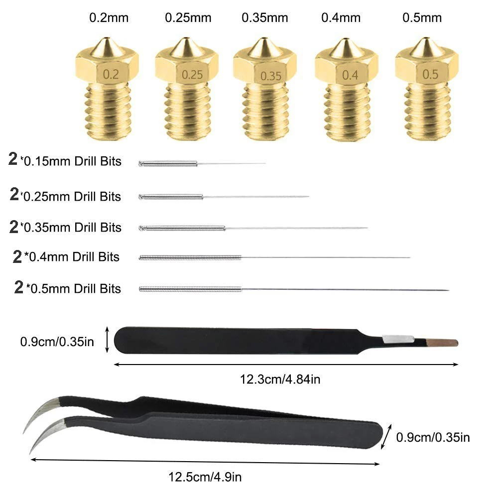 2 пинцета + 2 шт V5 V6 Латунное сопло + чистая иголка 3D принтер наборы 0,15 мм 0,25 мм 0,35 мм 0,4 мм 0,5 мм для Anet A8 Creality Cr-10