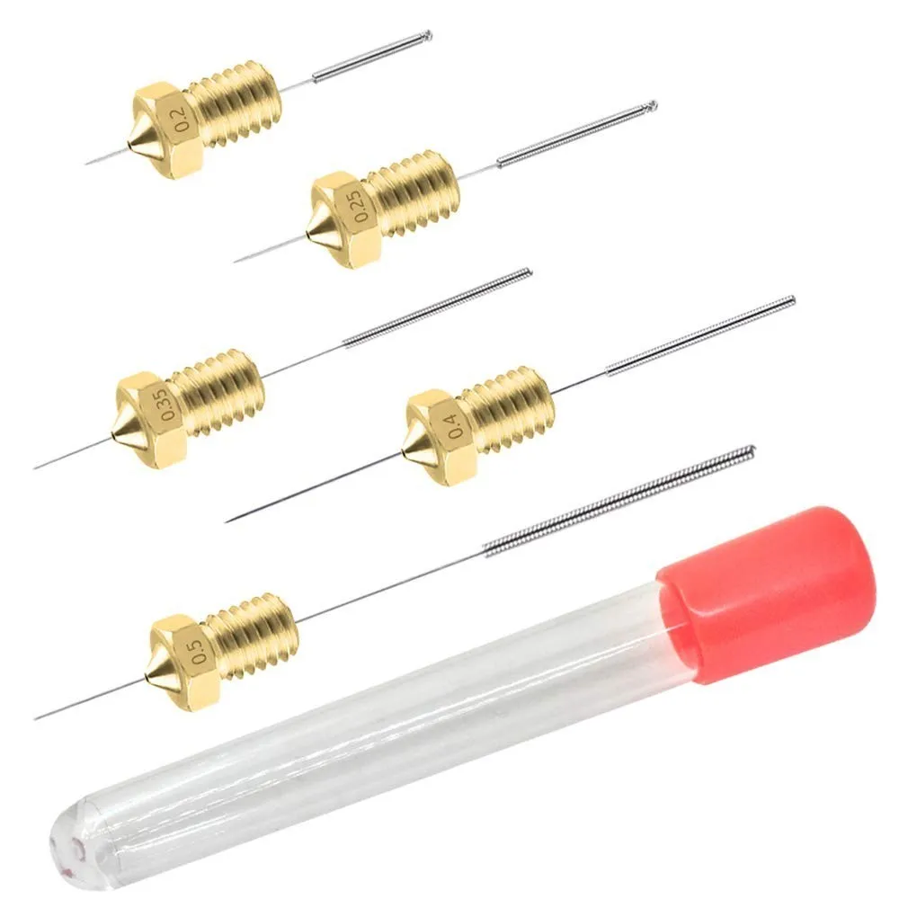 2 пинцета + 5 шт V5 V6 Латунное сопло + чистая иголка 3D принтер наборы 0,15 мм 0,25 мм 0,35 мм 0,4 мм 0,5 мм для Anet A8 Creality Cr-10