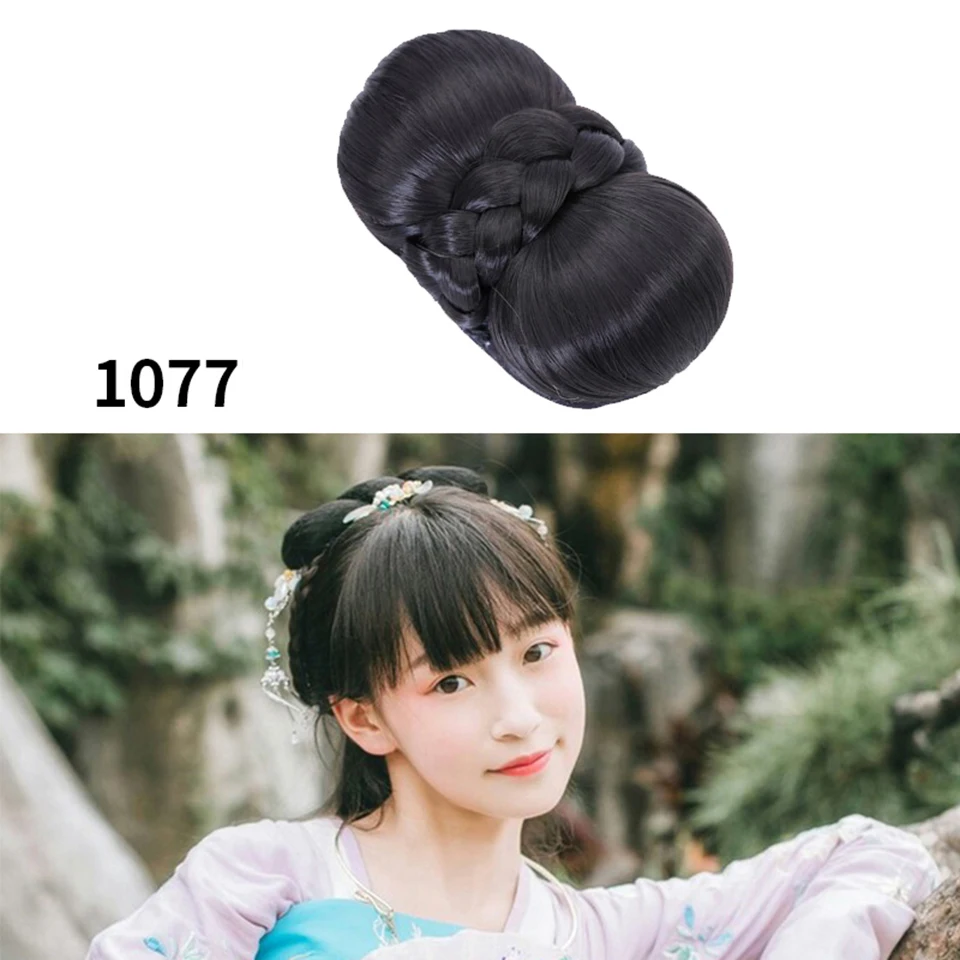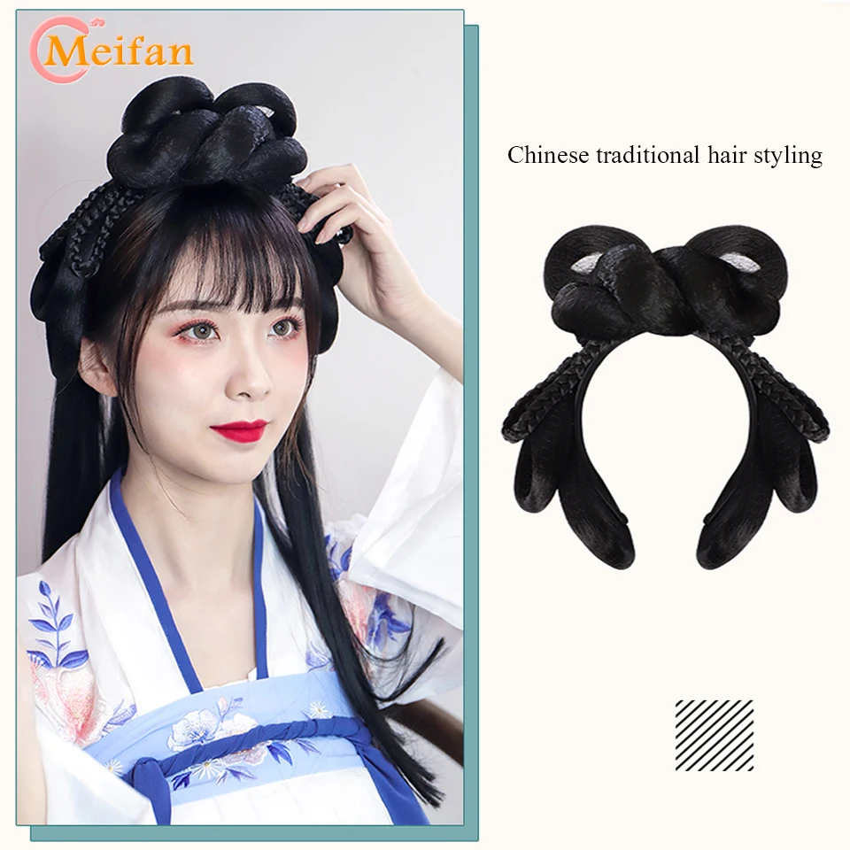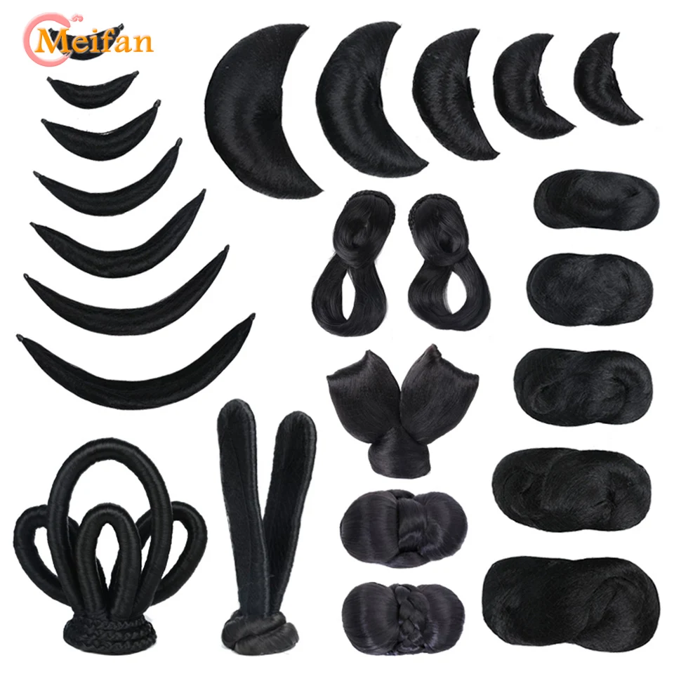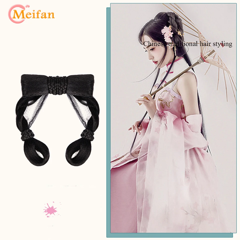 Шиньон из черных волос MEIFAN в традиционном китайском ретро-стиле, искусственные волосы ханьфу, подушечка для пучка, парик для косплея в стиле телеплея для принцессы