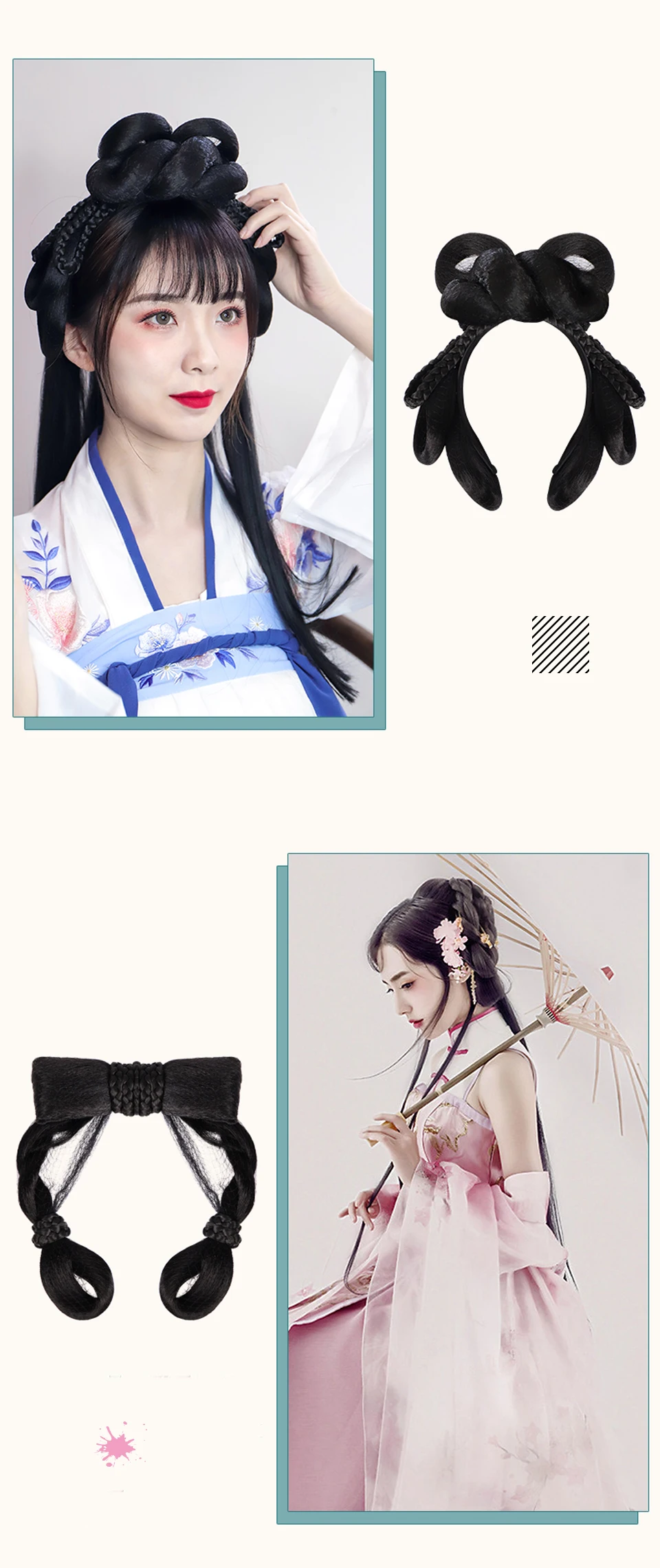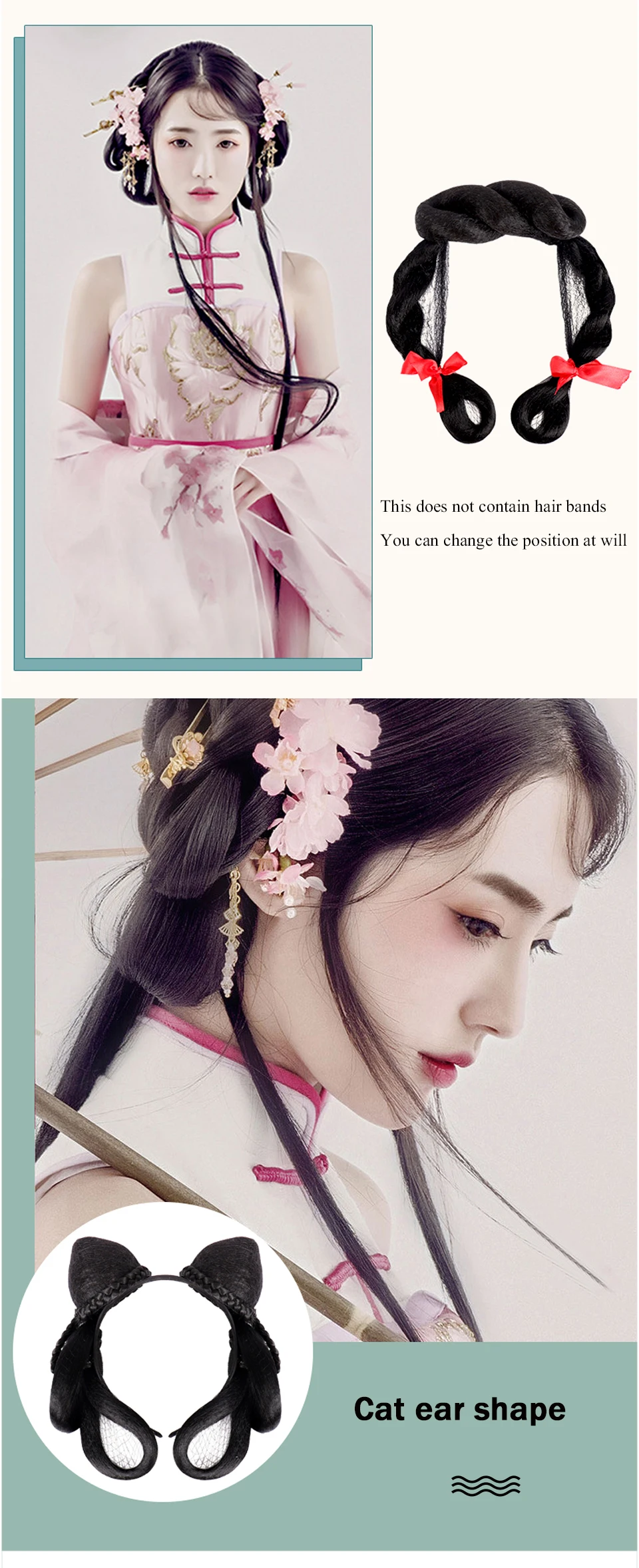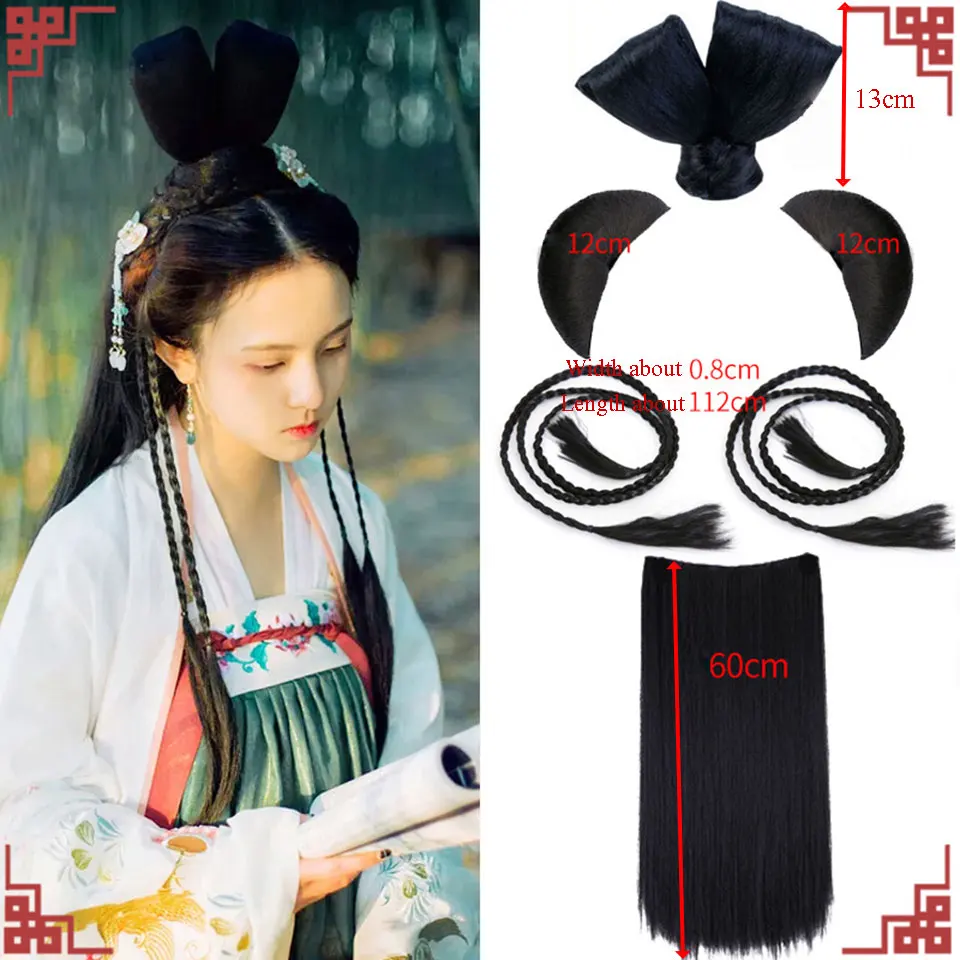 Шиньон из черных волос MEIFAN в традиционном китайском ретро-стиле, искусственные волосы ханьфу, подушечка для пучка, парик для косплея в стиле телеплея для принцессы