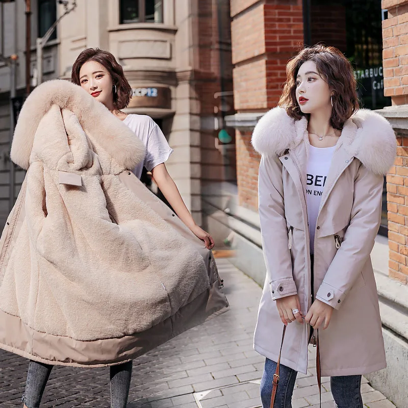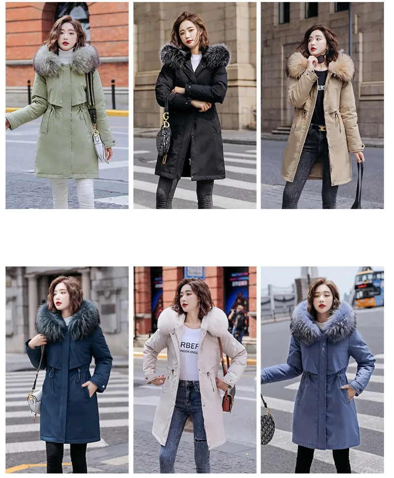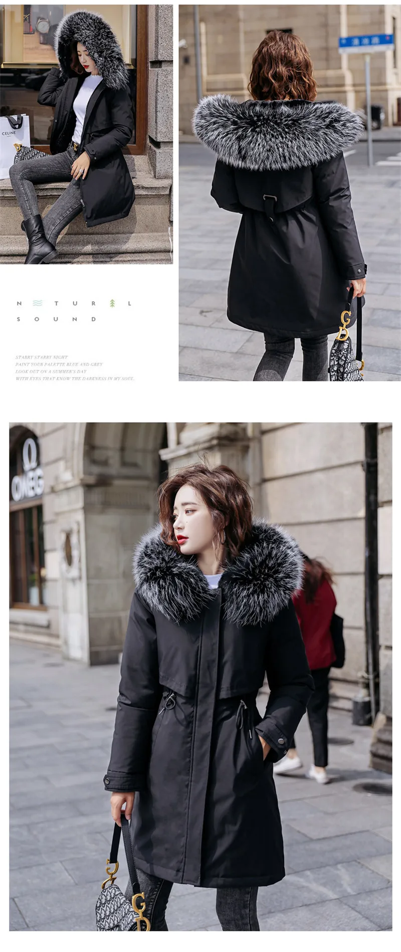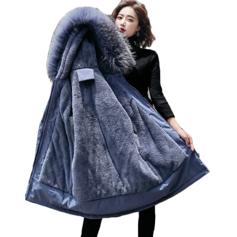Новинка, зимнее пальто, парка, Женская куртка с большим мехом, одежда средней длины с подкладкой, зимняя одежда, бархатная теплая зимняя куртка с капюшоном, 6XL